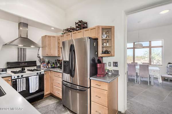 26.27 Acres Could be all Yours. Packaged deal or could buy seperate. Please see mls 22430011 and 22430008. Total combined is 26.27 acres. Home is on 20770. Custom RANCH Energy-efficient and gorgeous Home surrounded by Ironwood Forest National Monument with spectacular mountain views. Throughout this custom built 3,052 sqft, 3 bed, 3 bath, award winning chef designed kitchen with an extremely spacious floorplan. There are high barreled ceilings, sky lights + 8'' rastra wall construction throughout enhancing the architecture of this beautiful home. Slate flooring. Oversized master suite with spacious walk-through closet to the private master bath which features walk in shower with decorative glass block and dual sinks.