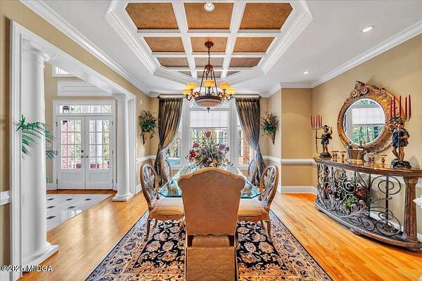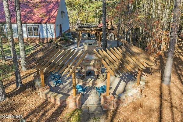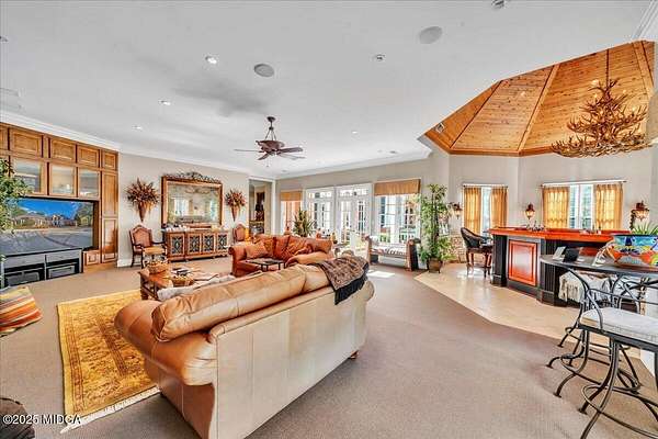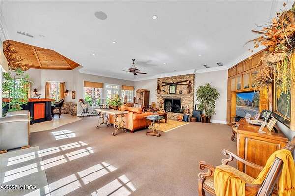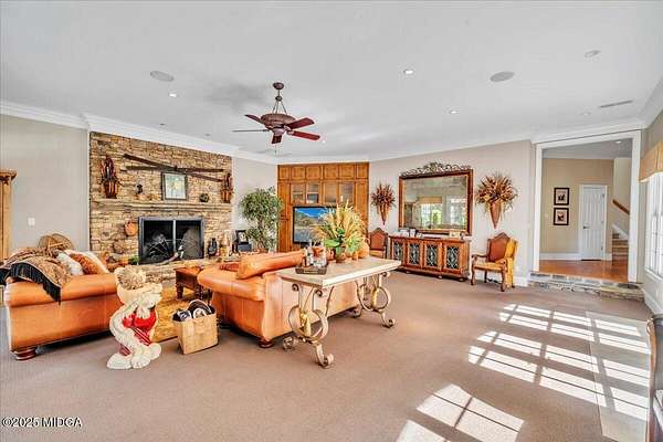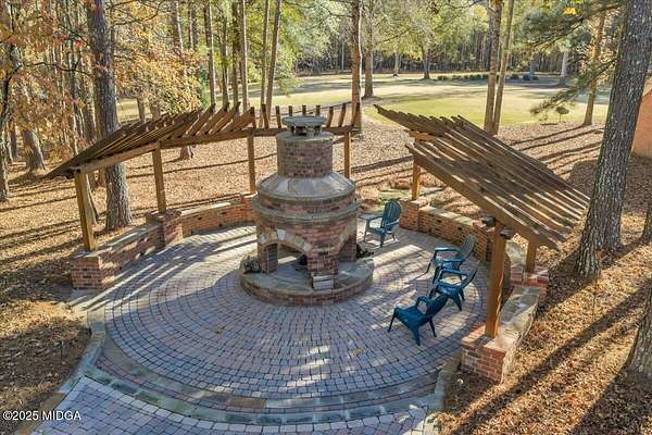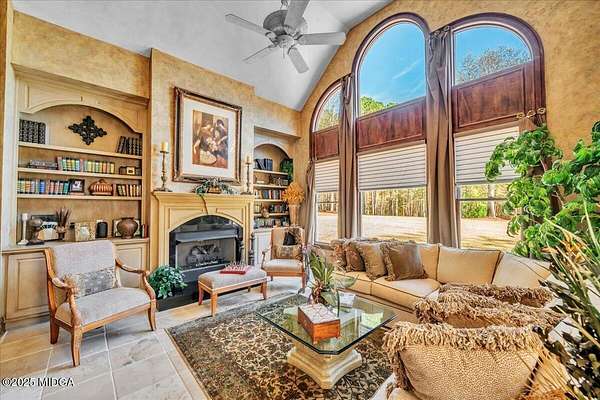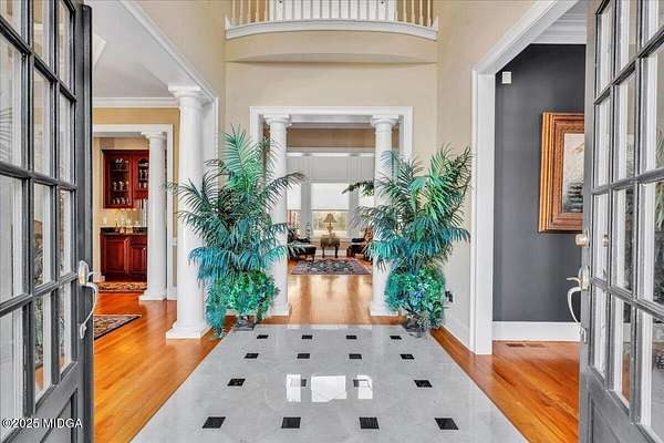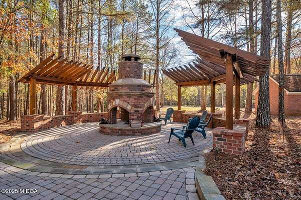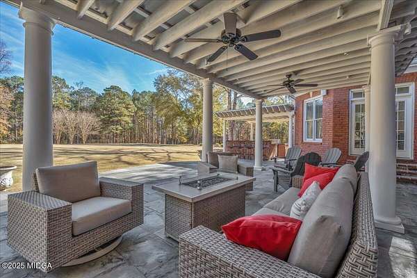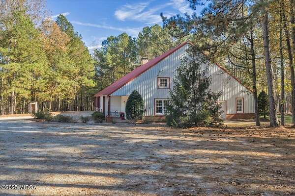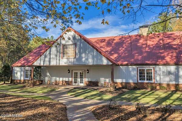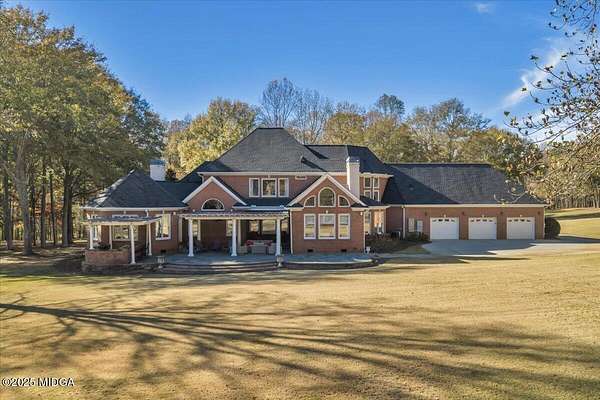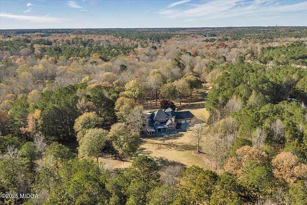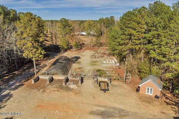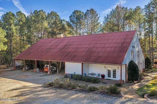 Set on 50 private acres in beautiful Senoia, Georgia, also known as the backdrop of The Walking Dead- this 6,788 SF estate, paired with a remarkable 6,000 SF luxury barn, offers an unparalleled living and entertaining experience just 29 miles from Atlanta and its airport. Impeccably maintained, the 2001 residence exudes Timeless Elegance with Roman columns, soaring ceilings, custom millwork, tray ceilings, expansive bright windows, and a chef's kitchen with JennAir Elite appliances. A dedicated wine cellar and an impressive entertainment room complete with a built-in full bar, leather seating, and wiring for a pull-down screen perfect for sports nights, elevating the home's lifestyle experience. Whole-home surround sound and luxurious finishes throughout create an atmosphere of sophisticated comfort. Designed by the owner, a professional landscaping artist, the outdoor spaces are breathtaking. Stone pathways, custom pergola pavilions, curated gardens, and stone steps with an integrated water feature create a serene, resort-like setting. A stone-tiled deck with a full outdoor kitchen anchors the main gathering area, complemented by a striking stone fireplace ideal for intimate evenings or elegant outdoor celebrations. The barn, a luxury log-cabin-inspired space, features soaring ceilings, a loft terrace, bar, commercial kitchen, surround sound, retractable large screen, full apartment, office, 2 full baths, 3 half baths, outdoor kitchen, recreation areas, and ample storage-perfect for entertaining, events, or farm use. This stunning property has been held by the same family since it was built, and it will mark your heart. Select furniture and equipment are included, adding exceptional value (contact agent for details). This is an incredible opportunity for entertainers, large families, hobby-farm living, or a memorable corporate retreat.