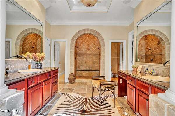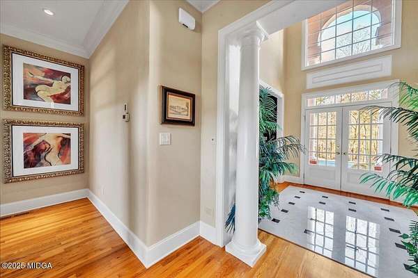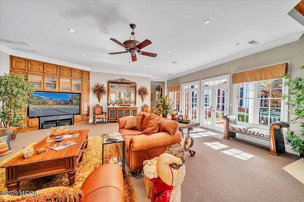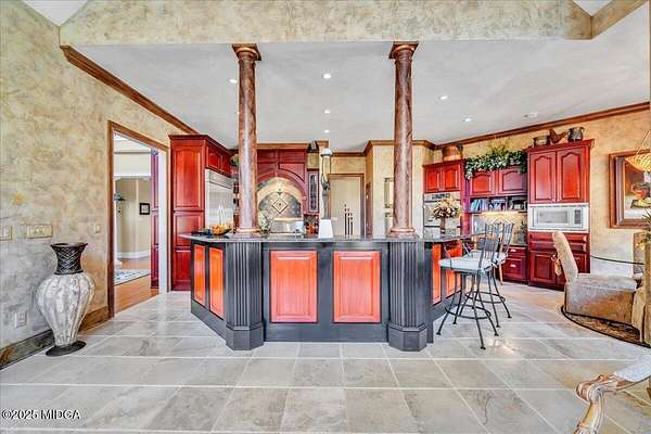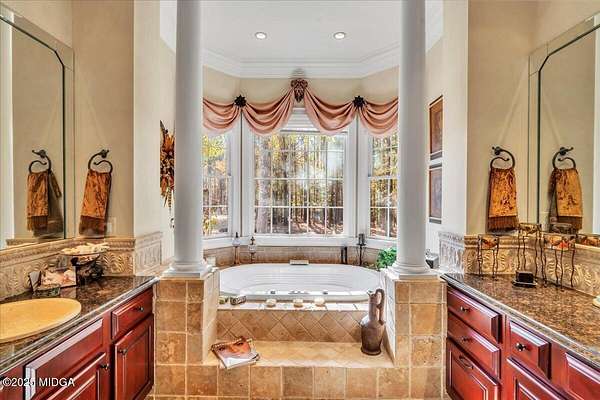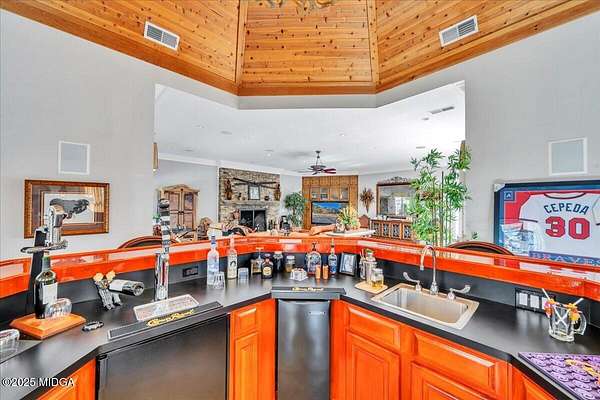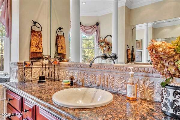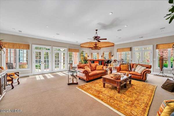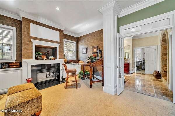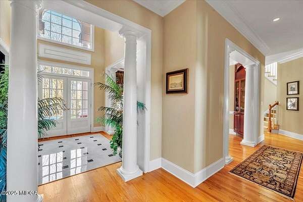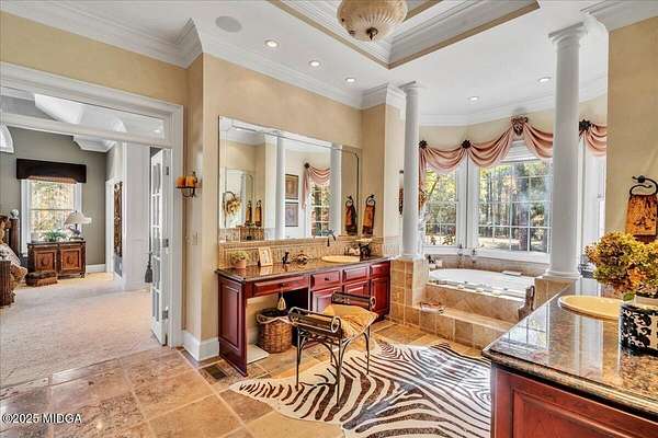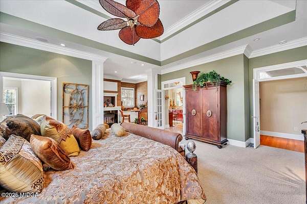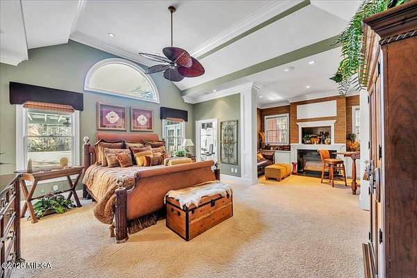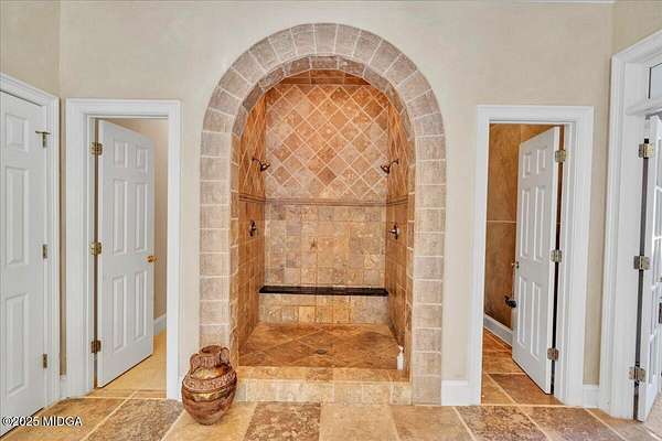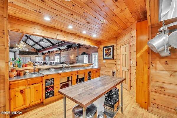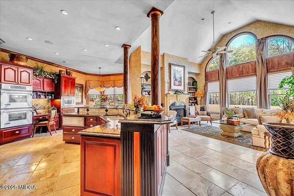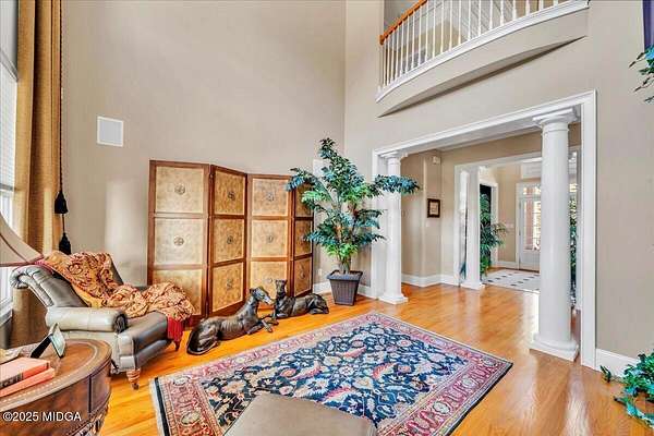 Set on 50 private acres in beautiful Senoia, Georgia, also known as the backdrop of The Walking Dead- this 6,788 SF estate, paired with a remarkable 6,000 SF luxury barn, offers an unparalleled living and entertaining experience just 29 miles from Atlanta and its airport. Impeccably maintained, the 2001 residence exudes Timeless Elegance with Roman columns, soaring ceilings, custom millwork, tray ceilings, expansive bright windows, and a chef's kitchen with JennAir Elite appliances. A dedicated wine cellar and an impressive entertainment room complete with a built-in full bar, leather seating, and wiring for a pull-down screen perfect for sports nights, elevating the home's lifestyle experience. Whole-home surround sound and luxurious finishes throughout create an atmosphere of sophisticated comfort. Designed by the owner, a professional landscaping artist, the outdoor spaces are breathtaking. Stone pathways, custom pergola pavilions, curated gardens, and stone steps with an integrated water feature create a serene, resort-like setting. A stone-tiled deck with a full outdoor kitchen anchors the main gathering area, complemented by a striking stone fireplace ideal for intimate evenings or elegant outdoor celebrations. The barn, a luxury log-cabin-inspired space, features soaring ceilings, a loft terrace, bar, commercial kitchen, surround sound, retractable large screen, full apartment, office, 2 full baths, 3 half baths, outdoor kitchen, recreation areas, and ample storage-perfect for entertaining, events, or farm use. This stunning property has been held by the same family since it was built, and it will mark your heart. Select furniture and equipment are included, adding exceptional value (contact agent for details). This is an incredible opportunity for entertainers, large families, hobby-farm living, or a memorable corporate retreat.