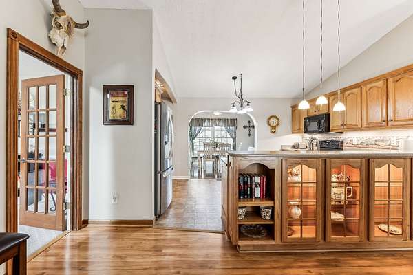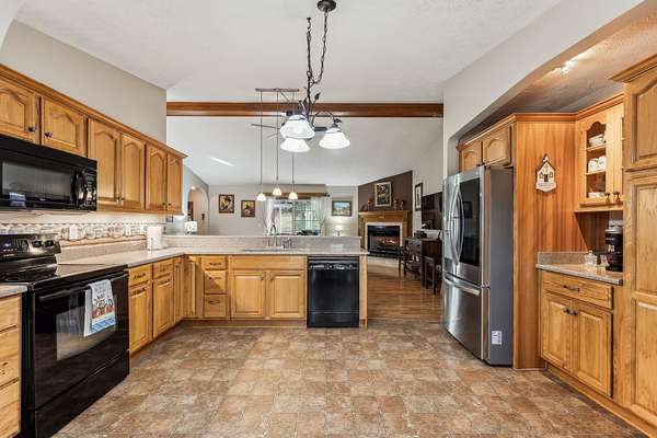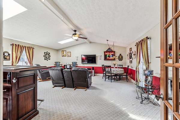 The modern kitchen shines with updated appliances, solid countertops, and a bar featuring a built-in lighted china cabinet that opens to the den. With 3 bedrooms plus an office/craft room (optional 4th bedroom), this home offers flexibility for your needs.