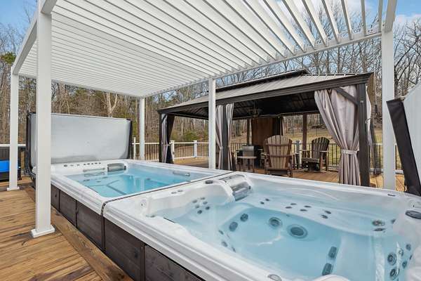 Your country paradise awaits--just 4 miles from I-65! Tucked back off the road with a 500 ft. paved driveway, this peaceful retreat offers the perfect blend of privacy and convenience. The property features a heated & cooled workshop with patio and tractor shed, plus incredible outdoor living spaces. The expansive deck is designed for entertaining, complete with a cooking gazebo, party gazebo, covered hot tub, swim spa, fire pit, and plenty of room to relax while watching the wildlife.