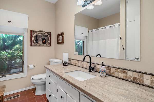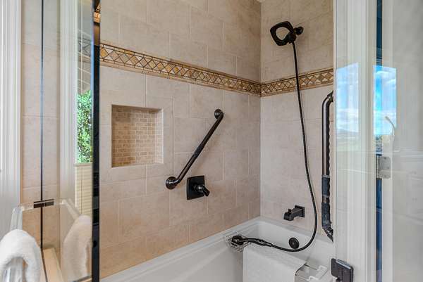 - Breakfast Bar, Built-In Features, Fiberglass Stall Shower, In-Law Floorplan, Laminate Counters, Linen Closet, Shower/Tub Combo, Solid Surface Counters, Tile Shower, Vaulted Ceiling(s), Walk-In Closet(s)