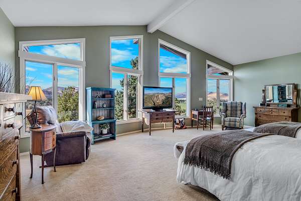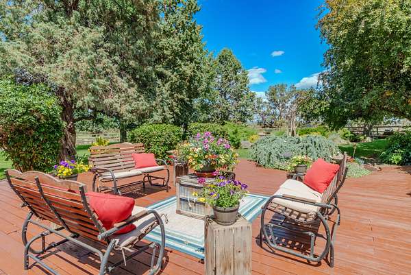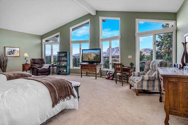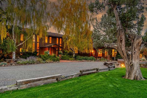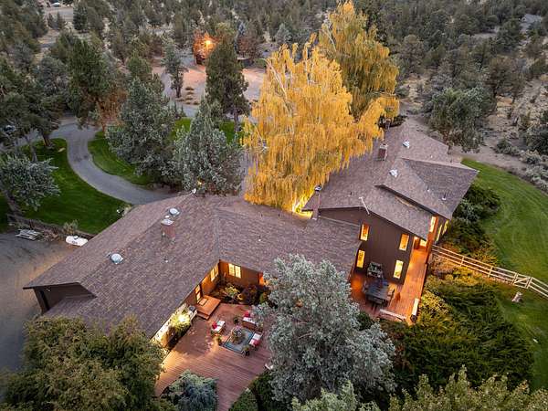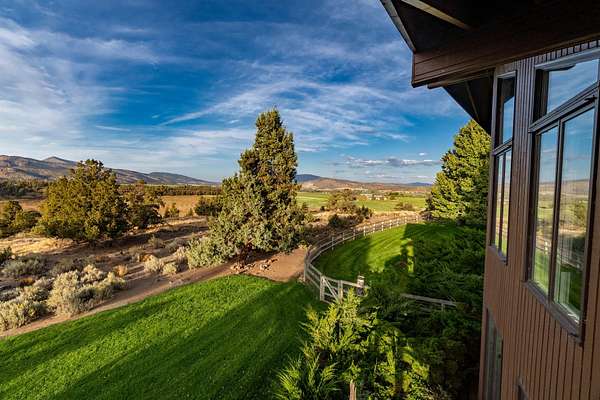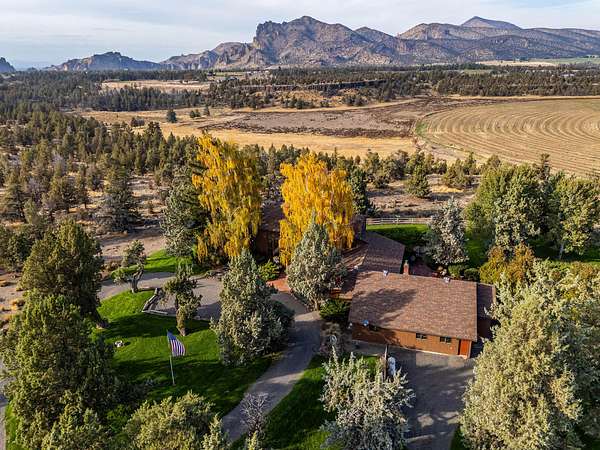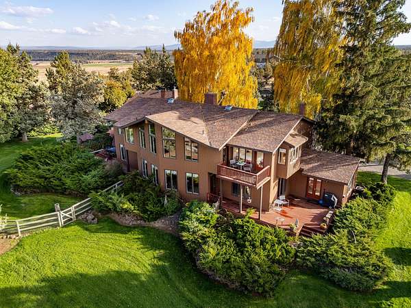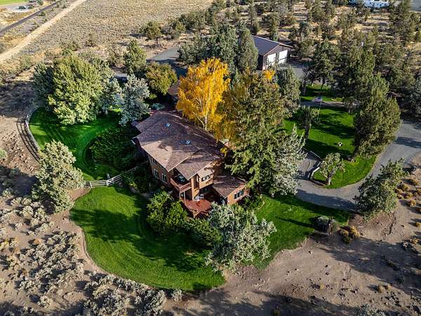 Premier Central Oregon property! On a bluff overlooking the Lone Pine Valley with spectacular Cascade, Smith Rocks & Ochoco Mt. views. Private & peaceful 15.16 acres features a custom 5618 sq.ft. home only 4 miles NE of Redmond. The 4+ bedroom, 6 bath showplace boasts stunning views, his & her walk-in closets and baths, & has multigenerational/mother-in-law capabilities downstairs. Dramatic entry with fountain/planter & a beautiful spiral staircase. Multiple ensuites, library, formal living & dining rooms, family room, parlor & office, plus loads of closet space & storage. Beautifully landscaped grounds with private well, underground sprinklers, mature trees, expansive decks for outdoor entertainment & a huge fenced backyard. Attached, air-conditioned & heated workshop and a 42'x48' drive-through RV/shop with four 14'x14' overhead doors. Abundant wildlife & elegant country living at the end of a private lane & only a few minutes from town. Seller downsizing, many furnishings available