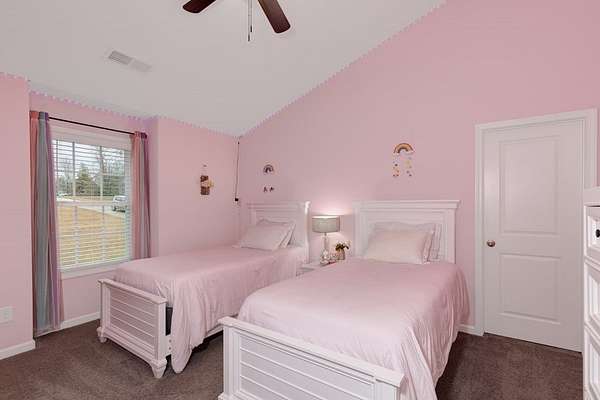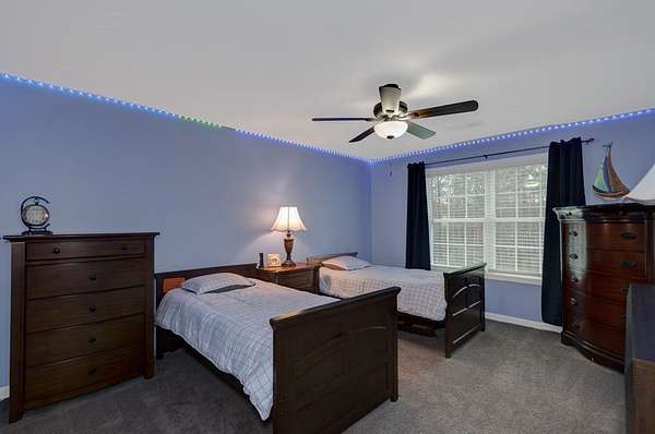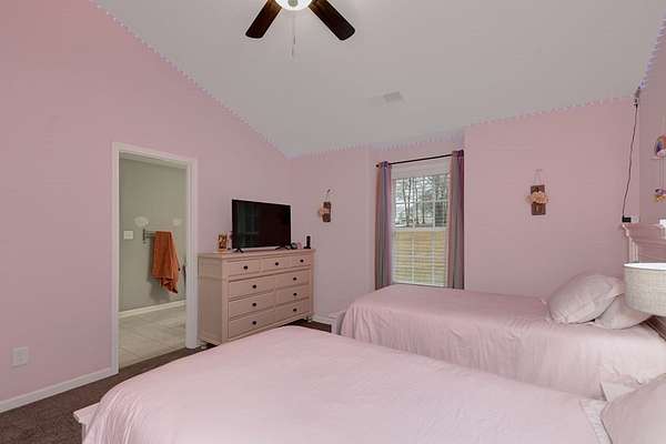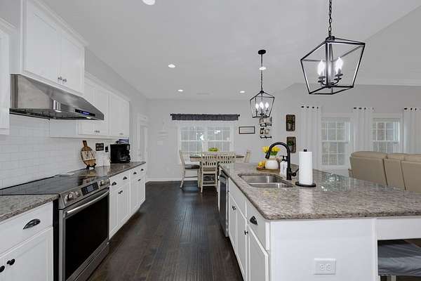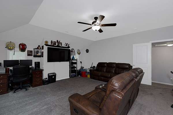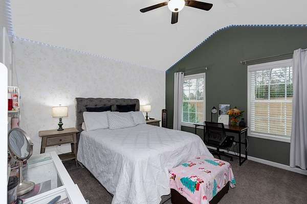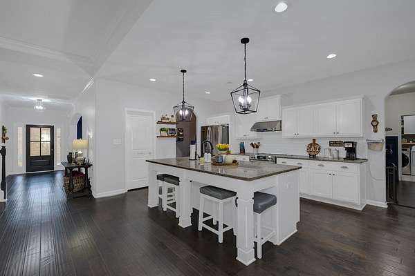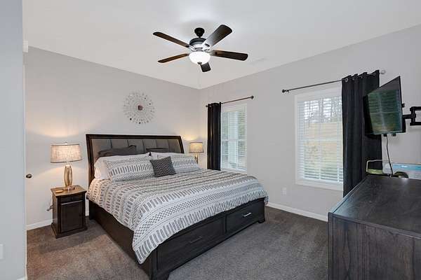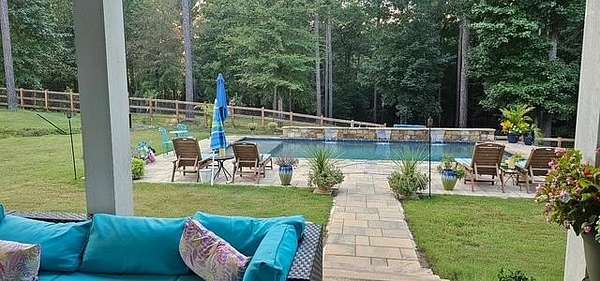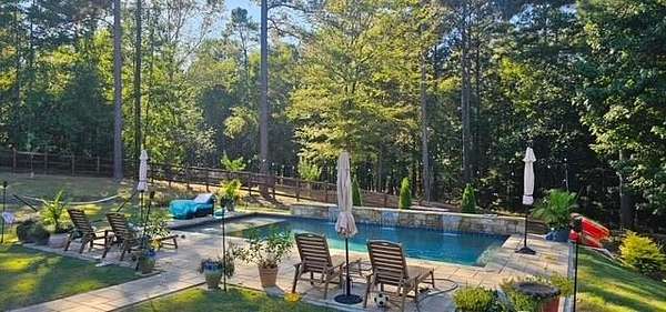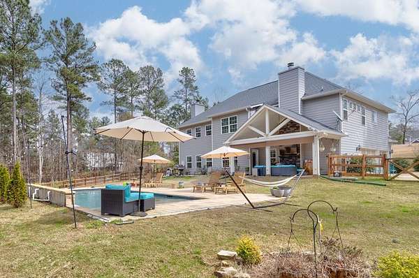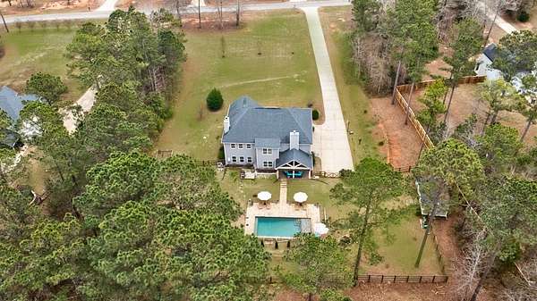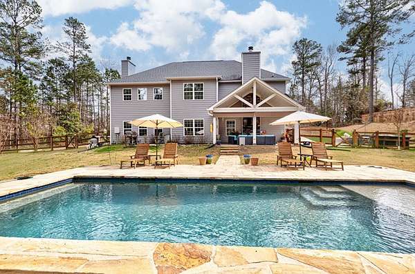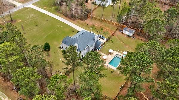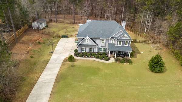 Welcome to this stunning home in the desirable Abberly Lakes Subdivision! Boasting 3,662 sq. ft. of living space on a sprawling 2.26-acre lot, this home features 5 generously sized bedrooms, including one conveniently located on the main level-ideal for in-laws or guests. The spacious kitchen is a chef's dream, offering a large island bar, abundant cabinet storage, sleek granite countertops, stainless steel appliances, and a walk-in pantry. Enter from the 3-car garage through a mudroom, which leads seamlessly into the kitchen and adjoining breakfast area. The kitchen is open to a spacious family room, featuring a cozy wood-burning fireplace-perfect for gatherings. A formal dining room and welcoming entry foyer add to the charm of the main level. The second story is home to the luxurious master suite with an en suite bathroom, plus three additional bedrooms and two more bathrooms. A huge bonus room offers endless possibilities-whether for homeschooling, family entertainment, or hobbies. Perfect for large families and entertainers, this home offers a covered game day porch with fireplace which overlooks a stunning 15x30-foot gunite saltwater pool with three waterfalls. You'll also find a 10x20-foot storage unit, perfect for keeping all your outdoor gear organized. Other highlights include beautifully landscaped grounds with hydrangea bushes, blueberry bushes, and fruit trees-peach, pear, plum, and cherry. This home combines comfort, functionality, style, and outdoor charm for the ultimate living experience-inside and out!
