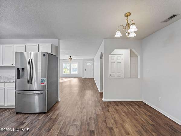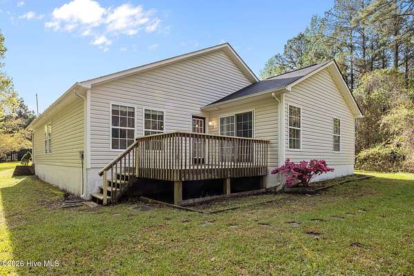 Welcome to your dream home! No HOA No City Taxes! Nestled in a tranquil cul-de-sac, this meticulously maintained 3-bedroom, 2-bath residence offers the perfect blend of comfort, style, and functionality. With a spacious layout and an expansive 1.88 acre lot, this property is ideal for families, professionals, or anyone seeking a peaceful retreat. Step inside to discover a bright and inviting living room that flows seamlessly into the dining area, perfect for entertaining family and friends. Large windows allow natural light to pour in, creating a warm and welcoming atmosphere. The heart of the home features a well-appointed kitchen outfitted with newer stainless steel appliances, ample counter space, and an abundance of storage. Whether you're an aspiring chef or just enjoy cozy family dinners, you'll appreciate this culinary haven that inspires creativity. Just off the kitchen, you'll find a versatile flex area that can be tailored to your needs. Whether you envision a home office, playroom, or cozy reading nook, this space is designed for adaptability and convenience.Retreat to one of the three generously sized bedrooms, each offering comfort and privacy. The master suite features an en-suite bath, providing a perfect haven to unwind after a long day.The expansive lot boasts a well-maintained backyard oasis, complete with a wood deck that invites outdoor gatherings and relaxation. Enjoy summer barbecues, morning coffee, or simply unwind under the stars. An outdoor shed provides extra storage for your gardening tools and outdoor equipment. Conveniently situated just off the main thoroughfare, this home offers easy access to local amenities, parks, schools, and shopping, all while providing a peaceful retreat from the hustle and bustle of everyday life. Imagine coming home to this serene setting, where you can enjoy both the comforts of modern living and the tranquility of nature right in your backyard. With ample space for outdoor activities, entertaining, and personal retreat, this home is a rare find in today's market. Don't miss the opportunity to make this your new home. Schedule a showing today and experience firsthand the warmth and comfort that this property has to offer. Your perfect haven awaits!
