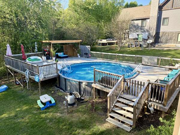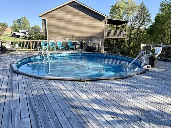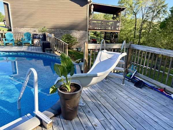 Spacious 3-bedroom, 2-bath home located in the desirable Blossom Ridge Subdivision, situated on three lots totaling approximately 1.5 acres. This well-maintained split foyer home offers a functional layout with the main level featuring a comfortable living room, kitchen, dining area, laundry, and all three bedrooms and two full baths. The kitchen is equipped with updated stainless steel appliances and opens to a covered deck that overlooks the backyard and pool area-perfect for relaxing or entertaining. The lower level features a large family room with walkout access to a covered patio and a fenced-in backyard. Outdoor amenities make this property stand out, including a swimming pool with slide, expansive 1 year built deck, and a covered cabana lounge area poolside. There is also a spacious side yard featuring a large pirate ship play area, along with a two-car garage. Conveniently located in a great subdivision just minutes from Laurel Lake, Interstate 75, and only a short drive to downtown Corbin. This property offers space, comfort, and excellent outdoor living all in one.