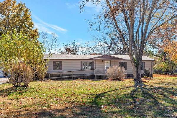 Enjoy country living with convenience in this well-maintained 3-bedroom, 2-bath home sitting on 6.90 acres. The home offers a large family room, walk-in closet and walk-in shower in the primary suite, along with a split floorplan. Numerous updates have already been completed including new siding, Andersen windows, roof, and gutters in 2023, along with new laminate flooring installed in 2024. Outside you'll find a covered back deck, perfect for relaxing or entertaining while overlooking the land along with a large back yard that is fenced in with chain-link fencing.The property includes open pasture, mature trees, and two ponds, offering plenty of room to fence off for livestock, hobby farming, or simply enjoying the outdoors.A spacious 40x40 shop provides excellent storage or workspace with three overhead doors, electric openers with remotes, concrete floors, electric, and water, plus a new shop roof installed in 2022. The shop also includes a large storage room with shelving. The property also features a large 3 bay tin building offering plenty of additional storage, along with a garden shed and a garden area ready to be brought back to life. Located just a few miles from town and approximately 20 minutes to Springfield, this property offers the space and privacy you want without sacrificing accessibility.
