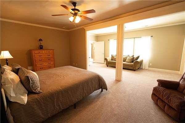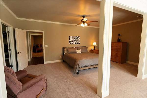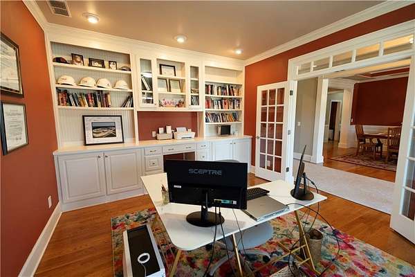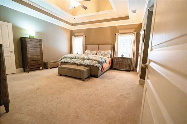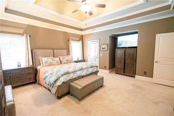- Bookcases, Cathedral Ceiling(s), Crown Molding, Disappearing Attic Stairs, Double Vanity, Entrance Foyer, Recessed Lighting, Tray Ceiling(s), Walk-In Closet(s)