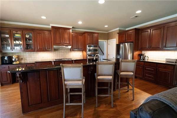 - Dishwasher, Disposal, Electric Oven, Gas Cooktop, Microwave, Range Hood