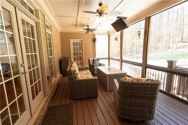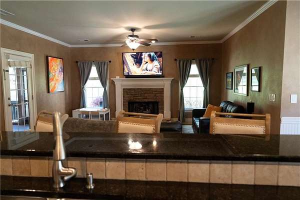 Luxury family living just a mile and a half from downtown Loganville. Imagine arriving home to the beautifully designed Chandler Walk neighborhood, where quiet streets wind past charming Craftsman-style homes on large, partially wooded lots. As you pull into the driveway, your home sits gracefully above the road on a private 1.76-acre lot. The landscaped yard and surrounding trees create a peaceful retreat-your own quiet escape from the pace of everyday life. You step onto the shaded rocking chair front porch where family members are waiting to welcome you home. Walking through the front door, the foyer's high ceilings guide you past a private office and formal dining room before opening into the vaulted living room. The warm glow of the stone fireplace immediately makes the space feel inviting. Through the back windows and screened porch, you notice your dog outside, pacing happily and waiting for a few afternoon pats. In the kitchen, the gas range hums as you prepare for a Saturday dinner with friends. Guests begin to arrive and naturally gather around the large island while you chat and prep food for the grill. As the evening grows, the gathering spills out onto the screened porch where a game plays on the TV, the sound of the sizzling grill and laughter fills the air. Kids run off to explore the huge backyard, and one friend decides a quick dip in the pool sounds like the perfect way to cool off. After dinner, a few people gather around the fire pit, sharing stories and enjoying the night air. The kids drift down to the walk-out basement to watch a movie in the entertainment room. When you head downstairs to check on them, you mix a drink at the newly finished basement bar and peek into the second master suite to make sure everything is ready for family staying the night. They plan to get an early workout in the gym room, so having their own space downstairs works perfectly. Before heading back upstairs, you take a quick walk through the basement family room and bonus room to make sure everything is in order. As the evening winds down, you check on the kids in the upstairs teen suite. With the house finally quiet, you take a little time for yourself-drawing a bath in the soaking tub and enjoying the calm before heading to the vaulted primary bedroom for the night. The next morning, after sleeping through your family's early workout routine, you grab your robe and a cup of coffee and step out onto the porch. The sounds of nature fill the air, and in that quiet moment it really sinks in-you truly love your home. And with all the extra space, maybe it's time to turn that bonus room into another bedroom with its own ensuite bath... just so you can invite even more people over for those Saturday dinners.