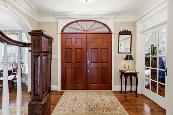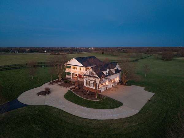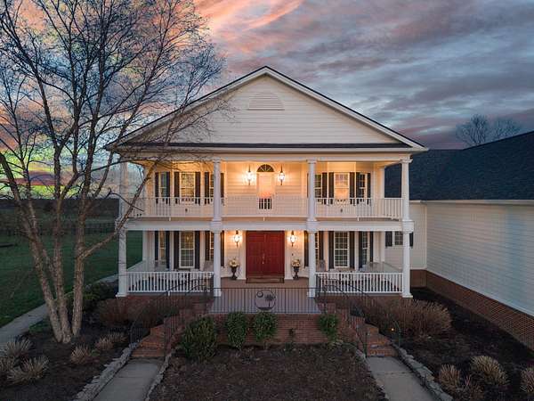 Inspired by timeless Southern architecture and designed from the renowned "Palmetto" plan by William Poole Designs of Wilmington, North Carolina, this remarkable Georgetown estate blends classic elegance with the peaceful beauty of Kentucky's countryside. Situated on 11.02 scenic acres, the property welcomes you with a long approach and stunning views of rolling farmland before revealing the home's stately double front porches and classic Antebellum design. From the moment you arrive, the welcoming arms brick staircase introduces the home's architecture and setting, creating a sense of quiet sophistication rarely found so close to Lexington and Georgetown. Inside, more than 4,100 square feet of thoughtfully designed living space offers a balance of gracious entertaining areas and comfortable everyday living. A dramatic entry foyer with soaring ceilings and a sweeping staircase immediately sets the tone, while rich hardwood floors, detailed millwork, cased openings, and thoughtfully placed pocket doors add depth, character, and a sense of timeless craftsmanship throughout the main level. The spacious great room features built-in cabinetry and a fireplace, opening beautifully into the heart of the home. The kitchen offers elegant cabinetry, granite countertops, a large center island, double ovens, gas range, and generous eat-in dining space, all designed to make gathering effortless. Large windows frame views of the surrounding countryside and allow natural light to fill the home. The first-floor primary suite provides a private retreat complete with an ensuite bath featuring a soaking tub, separate shower, and walk-in closets. Additional rooms on the main level include a formal dining room ideal for hosting and a dedicated home office overlooking the property. Upstairs, additional bedrooms and baths provide comfortable accommodations for family or guests, while the home's layout ensures both privacy and connection throughout. Outdoor living is just as impressive. Expansive porches and a large rear deck provide the perfect vantage point for enjoying peaceful mornings, sunset views, and the wide-open landscape that surrounds the property. The home also includes over 2,000 square feet of unfinished walk-out basement space, offering endless potential for additional living areas, recreation space, or custom finishes tailored to your needs. Additional highlights include: - 4 bedrooms - 3 full baths and 2 half baths - 3-car garage - Hardwood flooring throughout main living areas - Zoned heating and cooling - Covered porches and outdoor entertaining spaces - Private rural setting with sweeping countryside views Located on lovely Craig Lane, just minutes from Georgetown, Lexington, the Kentucky Horse Park, and Keeneland, this property offers the rare opportunity to enjoy the tranquility of country living while remaining convenient to everything Central Kentucky has to offer. Whether relaxing on the porch overlooking the land or entertaining friends and family inside, 208 Craig Lane captures the essence of Kentucky estate living. *Some images may include enhanced or edited elements, including twilight sky enhancements, for marketing purposes.*