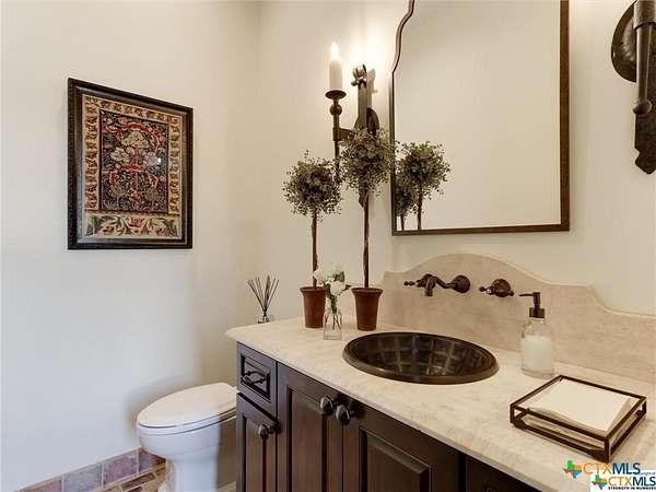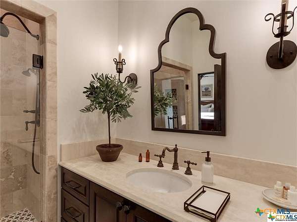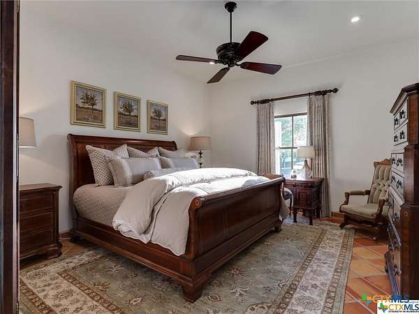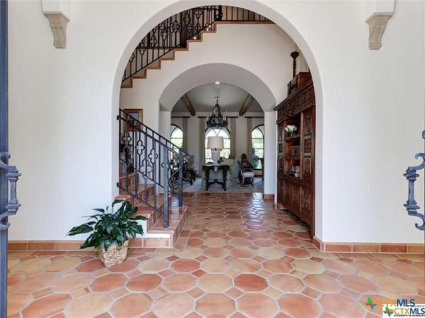 This home is elegant and understated in a true Spanish Colonial Revival style, in immaculate condition, located on six plus acres backing up to Spring Creek. Inside features include tree custom stone fireplaces, hand hewn antique beams, Saltillo flooring with Level 5 drywall throughout, large main suite quarters, two separate walk in closets, custom carved wood paneling in bathroom, kitchen and library. Formal living and dining rooms contain custom gothic arched windows. Kitchen includes breakfast area with custom windows, Sub-Zero and Wolf appliances in the kitchen, copper sinks, quartzite counters. Walk in pantry and large laundry. Exterior includes custom iron door and driveway gates, mature landscaping and lighting, graceful pool with spa. Summer kitchen with Wolf grill and sink, FP and includes storage and 1/2 bath. Outdoor chapel which can be used for another purpose, bocce court, labyrinth. Ivy lined privacy walls between neighbors. Absolutely STUNNING property!