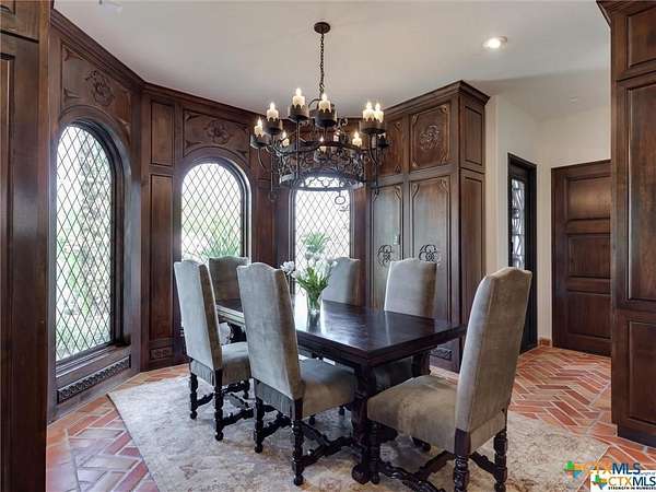 - Attic, Beamed Ceilings, Bookcases, Breakfast Bar, Ceiling Fans, Chandelier, Crown Molding, Dining Area, Double Vanity, Dry Bar, Eat In Kitchen, Elevator, Entrance Foyer, Garden Tub Roman Tub, High Ceilings, His And Hers Closets, Home Office, Multiple Dining Areas, Multiple Living Areas, Primary Downstairs, Separate Formal Dining Room