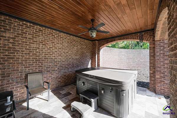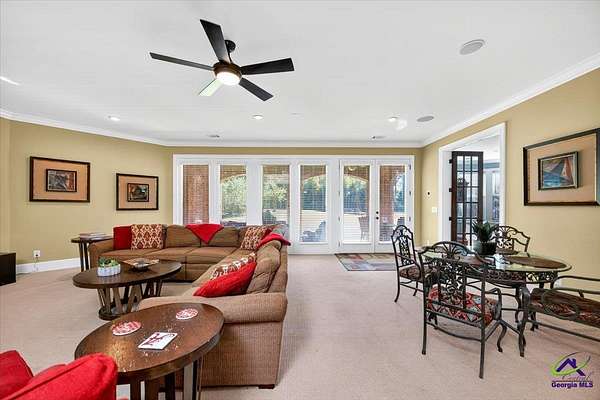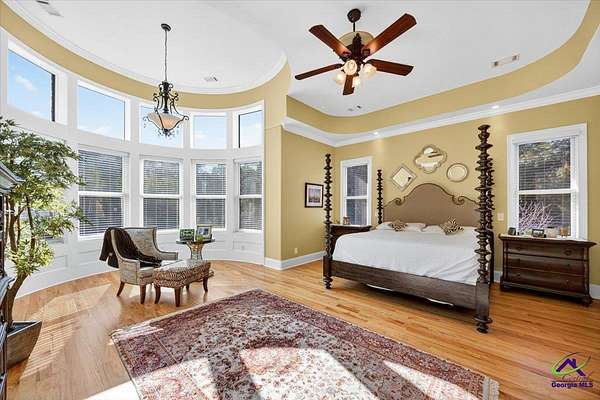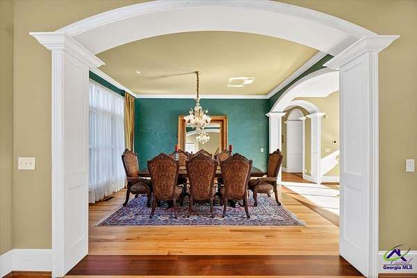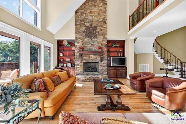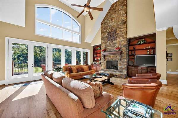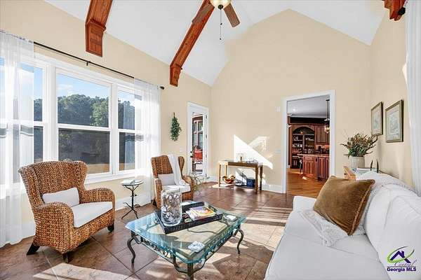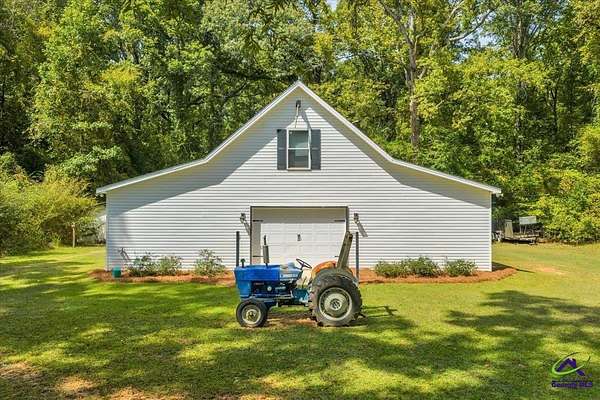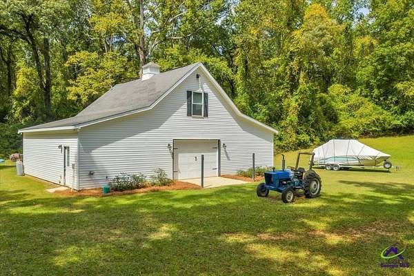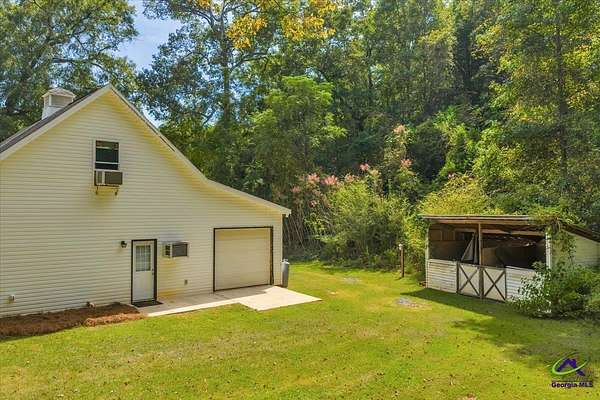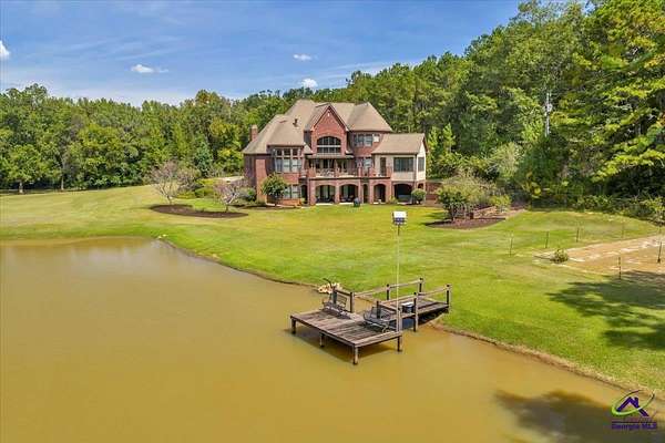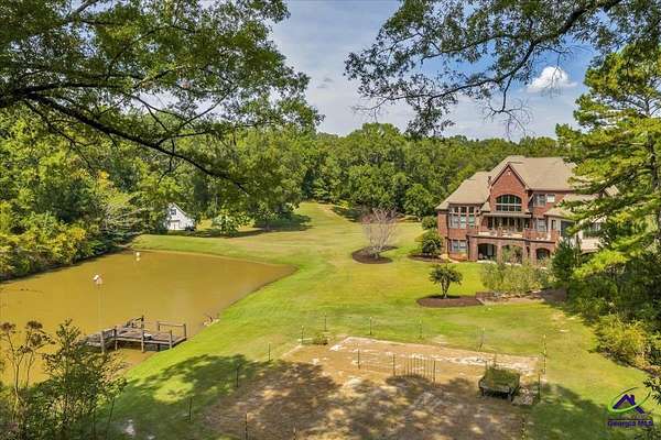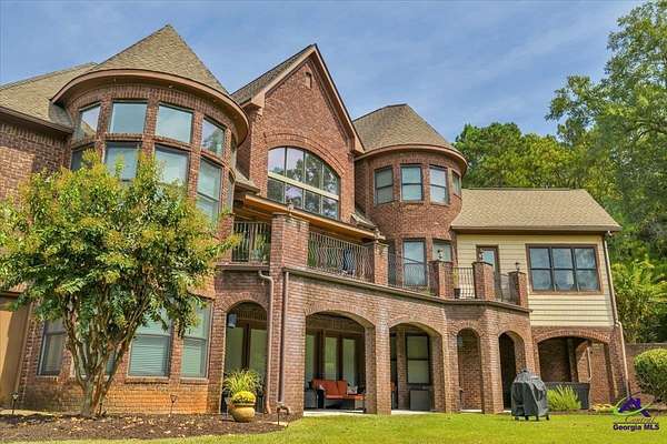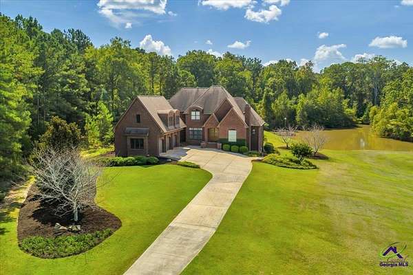 Exquisite Private Estate on 15 Acres in Peach County. Nestled on 15 secluded acres and completely surrounded by mature hardwoods, this 6,889 square foot custom estate offers the perfect blend of privacy, sophistication, and natural beauty. Overlooking a serene stocked pond, this property redefines Southern elegance with its stunning architecture, resort-like amenities, and timeless craftsmanship. Step inside and be greeted by a dramatic two-story foyer anchored by a sweeping spiral staircase that sets the tone for the grandeur beyond. The Great Room features a soaring ceiling, stone gas fireplace, and custom built-ins, filling the space with warmth and light from the expansive windows framing panoramic pond views. The Chef's Kitchen is both functional and elegant--complete with custom cabinetry, granite countertops, high-end appliances, a gas range with pot filler, breakfast bar, walk-in pantry, and an impressive Butler's Pantry with black walnut countertops. Entertain with ease in the formal dining room, or enjoy relaxed gatherings in the Florida Room, where vaulted ceilings and exposed beams showcase breathtaking views of the grounds. This thoughtfully designed home spans three levels of luxury living, featuring four bedrooms, four full baths, and two half baths, along with multiple living areas, two kitchens, a game room, gym, office, and loft living area. The Master Suite is a private retreat offering extraordinary architectural detail, a cozy fireplace above the jetted tub, a tiled walk-in shower, and peaceful views of the pond and surrounding woods. Outside, the estate continues to impress. The rear elevation- with its grand turrets, upper terrace, and lower veranda--creates a stunning focal point overlooking the pond and manicured landscape. Enjoy the tranquil sounds of nature from the dock, where bass and bream leap at feeding time. The grounds offer a stable, garden plot, and a variety of fruit trees such as pecan, peach, plum, fig, and blueberry. A separate Workshop/Barn Apartment provides ideal space for guests, multi-generational living, or an in-law suite. The apartment features an open bedroom area, full bath, laundry, storage room, refrigerator hookup, gas stove, and loft. Additional highlights include: o Oak hardwood flooring throughout main and upper levels o Energy-efficient features with average electric bill around $350 o Two tankless Rinnai water heaters o Central vacuum system o In-home audio and surround sound o Custom closets and built-ins o Impeccable mechanical room and walk-in attic storage o Three-car garage o Approximately five acres of open land bordered by ten acres of wooded privacy. Every inch of this home has been meticulously designed for comfort, function, and beauty, making it one of Peach County's most extraordinary offerings.