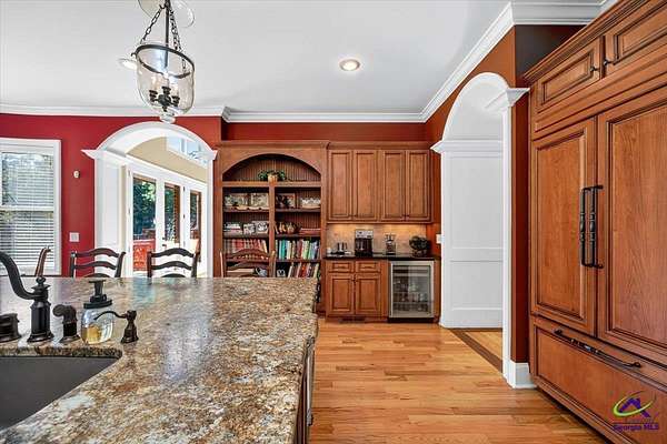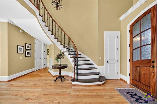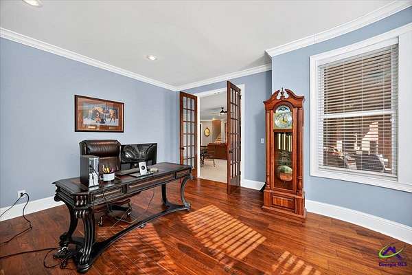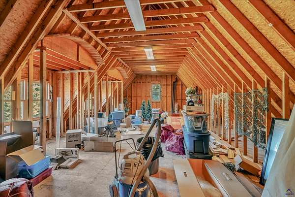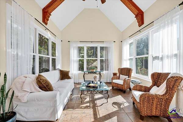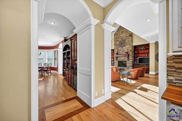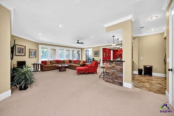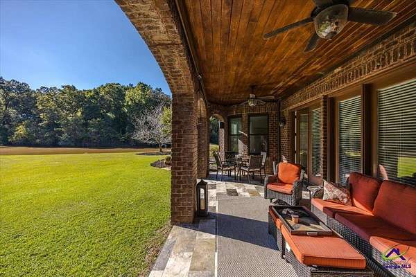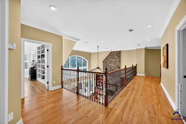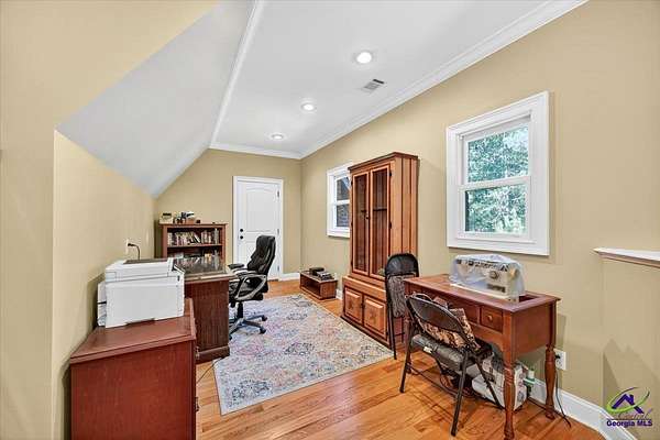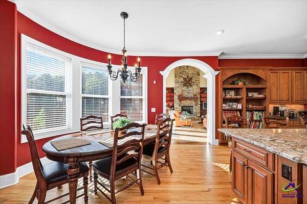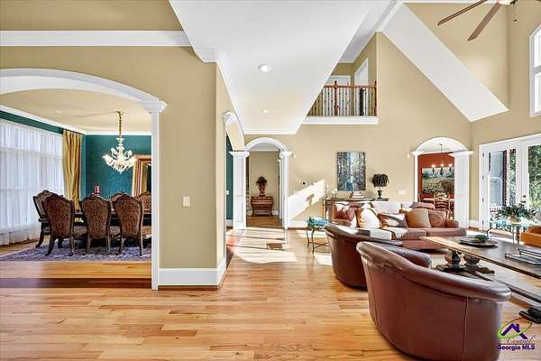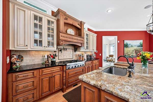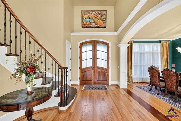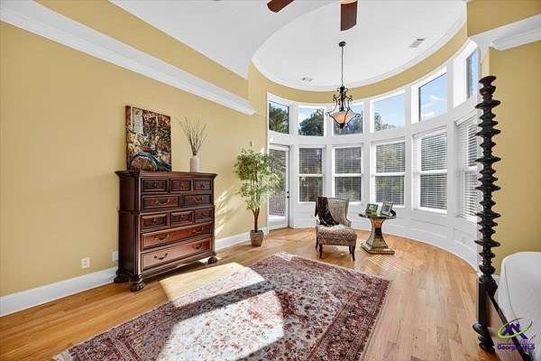 Exquisite Private Estate on 15 Acres in Peach County. Nestled on 15 secluded acres and completely surrounded by mature hardwoods, this 6,889 square foot custom estate offers the perfect blend of privacy, sophistication, and natural beauty. Overlooking a serene stocked pond, this property redefines Southern elegance with its stunning architecture, resort-like amenities, and timeless craftsmanship. Step inside and be greeted by a dramatic two-story foyer anchored by a sweeping spiral staircase that sets the tone for the grandeur beyond. The Great Room features a soaring ceiling, stone gas fireplace, and custom built-ins, filling the space with warmth and light from the expansive windows framing panoramic pond views. The Chef's Kitchen is both functional and elegant--complete with custom cabinetry, granite countertops, high-end appliances, a gas range with pot filler, breakfast bar, walk-in pantry, and an impressive Butler's Pantry with black walnut countertops. Entertain with ease in the formal dining room, or enjoy relaxed gatherings in the Florida Room, where vaulted ceilings and exposed beams showcase breathtaking views of the grounds. This thoughtfully designed home spans three levels of luxury living, featuring four bedrooms, four full baths, and two half baths, along with multiple living areas, two kitchens, a game room, gym, office, and loft living area. The Master Suite is a private retreat offering extraordinary architectural detail, a cozy fireplace above the jetted tub, a tiled walk-in shower, and peaceful views of the pond and surrounding woods. Outside, the estate continues to impress. The rear elevation- with its grand turrets, upper terrace, and lower veranda--creates a stunning focal point overlooking the pond and manicured landscape. Enjoy the tranquil sounds of nature from the dock, where bass and bream leap at feeding time. The grounds offer a stable, garden plot, and a variety of fruit trees such as pecan, peach, plum, fig, and blueberry. A separate Workshop/Barn Apartment provides ideal space for guests, multi-generational living, or an in-law suite. The apartment features an open bedroom area, full bath, laundry, storage room, refrigerator hookup, gas stove, and loft. Additional highlights include: o Oak hardwood flooring throughout main and upper levels o Energy-efficient features with average electric bill around $350 o Two tankless Rinnai water heaters o Central vacuum system o In-home audio and surround sound o Custom closets and built-ins o Impeccable mechanical room and walk-in attic storage o Three-car garage o Approximately five acres of open land bordered by ten acres of wooded privacy. Every inch of this home has been meticulously designed for comfort, function, and beauty, making it one of Peach County's most extraordinary offerings.