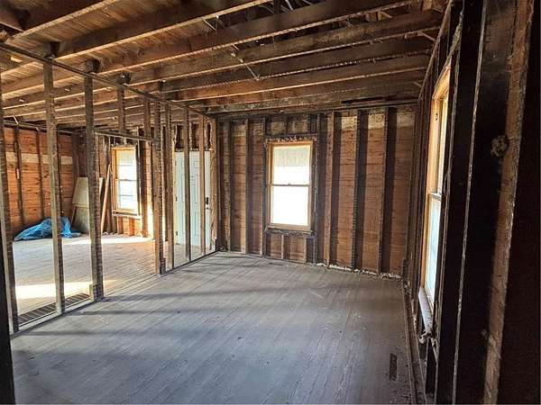 This property has been cleaned out and cleaned down to the studs so it's ready for an investor contractor to take over and finish it up. This house is set up for a 3 bedroom, 1.5 bath home with large living room/dining room, and 2 car garage, unfiinished basement, and sits on a 7.5 acre lot. Current owner purchased this property with the intention of finishing the property and renting it or selling it but plans changed. They tore out all old cabinets, bath fixtures, broken sheetrock, ceilings, and flooring and hauled it off. Also installed an electrical box. Garage could be finished into a large rec room if buyer wants to build a detached garage, which would add valuable square footage to the house. Lots of potential!!