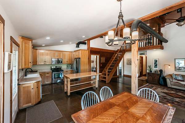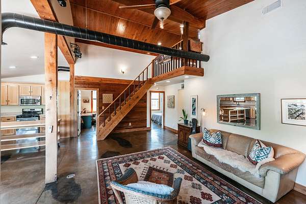 Once a barn, now transformed into one of the most unique and inspiring living spaces you’ll ever experience. Nestled on 5 dreamy acres, this property offers a peaceful, tucked-away feel while still being just minutes from town-truly the best of both worlds.