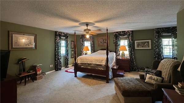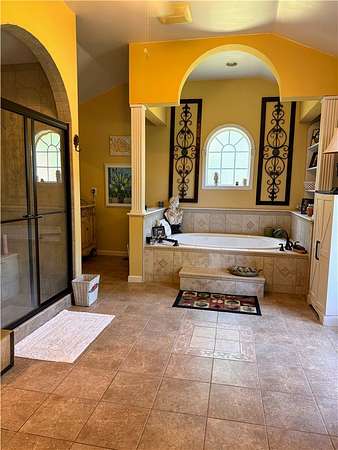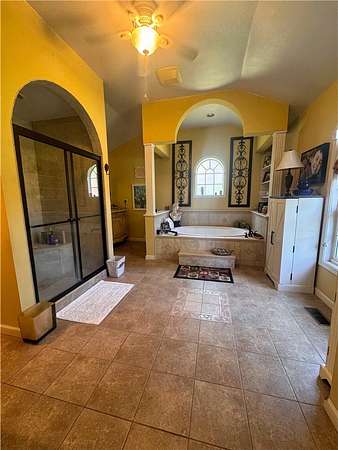 - Bath In Primary Bedroom, Cable TV, Cathedral Ceilings, Ceiling Fans, Dual Sinks, Fireplace, Granite Counters, High Ceilings, Jetted Tub, Laminate Countertop, Main Level Primary, Multiple Primary Suites, Pull Down Attic Stairs, Separate Shower, Smooth Ceilings, Tray Ceilings, Vaulted Ceilings, Walk In Shower, Window Treatments