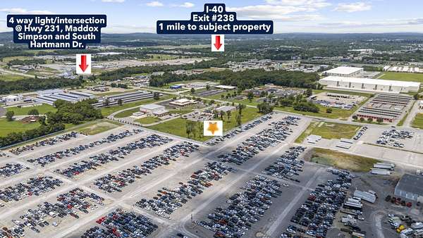 Great location on Maddox Simpson Pkwy - An extensive commercial and industrial hub that is located 1 mile from I-40 exit #238 - off of a 4-way light/intersection of Hwy 231, South Hartmann & Maddox Simpson. 3.79 acres is adjacent to the DMV, Shenandoah Mills, Anytime Fitness, Middle TN Electric, Lochinvar, etc.. . Zoned CG commercial, all city utilities including sewer. Level property - a blank slate for your future business. 175 ft frontage on Maddox Simpson & also 68' easement onto property from paved drive between DMV & Shen Mills. CG zoning: Administrative, General Business & Communication, General Retail Trade, Light & Medium Construction Services, Wholesale, Hotel/Motel, etc.. See CG zoning sheet in media/pictures.