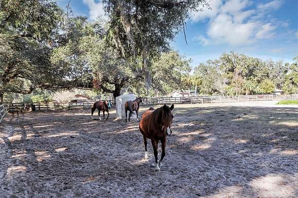 Bring your horses and enjoy this beautiful property with endless possibilities and style. Boasting just over 18 acres of agricultural land, this pool home has everything you need to enjoy the country life while being conveniently located to I-75, downtown Ocala, medical facilities, shopping, restaurants and more. The main residence is full of character and has 4 bedrooms, a bonus room, 3 full bathrooms and a 2-car garage with overhead loft storage. This home even includes a true basement which is a rare find for a Florida home! Enter the home into a fully functional utility room to meet all of your storage needs. This home has 2 wood burning fireplaces and 1 gas fireplace faced with original Chicago brick to enjoy in the cool winter months. The island kitchen provides a both functionality and style with an electric in-island range and overhead commercial hood, stainless steel appliances and a unique terrazzo flooring. The remainder of the home has true hardwood flooring and an abundance of natural light. Enjoy the hot summer weather in your open pool, complete with a full pool bathroom. The roof was replaced in 2023. There are two A/C units, a whole home generator, 2 instant electric water heaters, a 250-gallon propane tank, solar panels (will be paid off by seller), 3 wells, 4 electric meters (one in each barn, one in main residence and one in mobile home - provided by Duke Energy). A fully functional workshop has everything you need to work on your hobbies or to provide additional storage for your farm equipment. This workshop can be utilized as a barn apartment, as it includes an office with mini split, a tack room with a wall A/C unit, a fully functional kitchen, a full bathroom, a built-in 1950 Dewalt, and a water heater. The adjacent hay barn is hooked up to a 50 AMP electric service. There is plenty of room for all your horses as well as boarding opportunities for others. There are two horse barns on the property. One barn has 9 stalls and the other has 10 stalls. Enjoy BBQs and picnics all year round on the newly constructed concrete pad. The property has 3 RV pads that all share one septic system and one well. A 2023 3-bedroom, 2-bathroom double-wide mobile home is currently rented on the property. Please note that the storage shed belongs to the tenant and does NOT convey with the sale. The property has a total of 8 paddocks, a 60-foot round pen with an observation deck and a 100 x 180 arena. This property is a horse enthusiast's dream. Schedule your showing today and make this property your own!