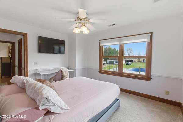 - Blinds/Shades, Ceiling Fan(s), Kitchen Island, Master Downstairs, Pantry, Solid Surface, Walk-In Closet(s), Walk-In Shower
