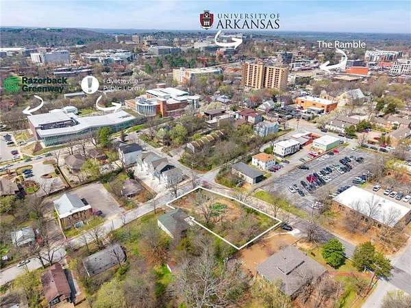 Located in the heart of Fayetteville, this prime, cleared lot offers exceptional location and walkability to the Fayetteville Square, Walton Arts Center, Fayetteville Public Library, along with shopping, dining, and nearby trails. Previously improved and now ready for construction, this property presents a rare opportunity in one of the city’s most sought-after areas. Zoned Downtown General, it offers outstanding flexibility for a custom primary residence or potential multi-family or mixed-use development (buyer to verify permitted uses and density). Whether you’re looking to build your dream home in a walkable urban setting or capitalize on development potential, this lot delivers location, versatility, and long-term value. Opportunities like this in downtown Fayetteville are limited—don’t miss your chance to build or invest in the center of it all. Schedule your showing today!