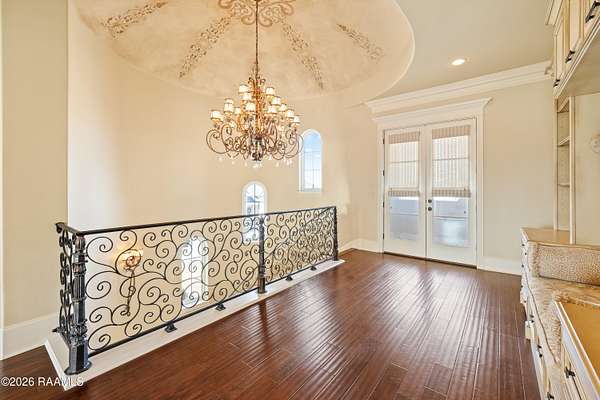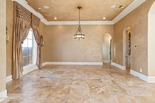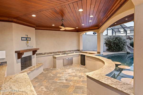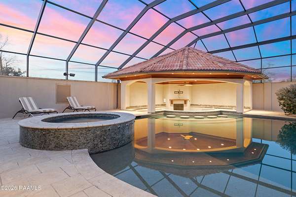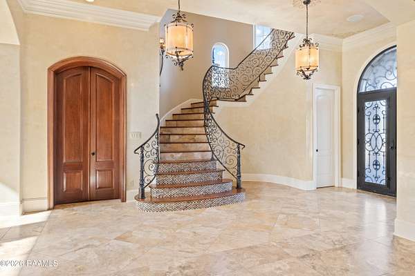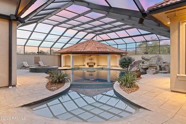 Hidden within the gates of the coveted Saddleback Trail Subdivision, this extraordinary estate offers a rare blend of privacy, scale, and architectural distinction. Situated on two private acres, this custom-built Van Alan Home was showcased in the 2011 Parade of Homes and features 8,340 square feet of living space with over 11,000 square feet under roof, thoughtfully designed for both grand entertaining and elevated everyday living. Upon entering the property, you are greeted by a striking fire and fountain feature, setting the tone for the luxury that unfolds throughout the estate. The residence includes five bedrooms and five-and-a-half bathrooms and is equipped with a whole-home generator, full security camera system, and surround sound throughout. The arrival experience continues inside with a grand foyer accented by Venetian plaster and a dramatic, soaring custom staircase, complemented by a formal dining room ideal for elegant gatherings. The home offers two expansive living areas showcasing triple crown molding and custom built-ins. The chef's kitchen features Thermador appliances, ample workspace, and a wet bar just off the kitchen, making it well-suited for entertaining. Additional interior amenities include a large executive office, a full-sized gym, a separate sauna, and a separate steam room, creating a true luxury wellness retreat within the home. The state-of-the-art private movie theater is the real show stopper. From the custom-engineered vibration theater-grade surround and 3D capability, this is a must-see. It also includes a true wet bar and a microwave for POPCORN! The outdoor living is equally impressive, featuring a resort-style pool with grotto, slide, & hot tub, along with a climate-controlled outdoor kitchen with sliding glass doors that open seamlessly to the pool area. From the Parade-level craftsmanship, resort-style amenities, and unmatched privacy. This home is truly a see-it-to-believe-it experience.