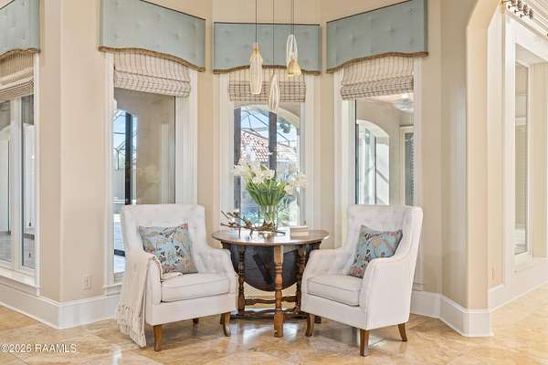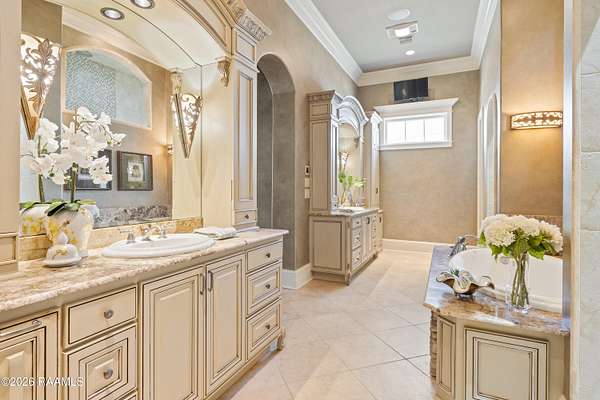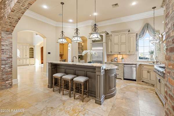 - 9+ ft Ceiling, Attic Access, Bookcases, Built-In Features, Built-Ins, Central Vacuum, Computer Nook, Crown Molding, Double Vanity, Dual Closets, Garden Tub, Gas Dryer Con, Granite Counters, High Ceilings, Kitchen Island, Multi-Head Shower, Primary Bath, Sauna/Steam, Separate Shower, Special Bath, Varied Ceiling Heights, Walk-In Closet(s), Walk-In Pantry, Wet Bar