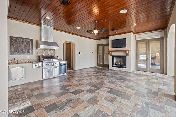 - Balcony, Double Gate Access, Gas Grill, Gas/Propane Grill, Hot Tub, Lighting, Outdoor Speakers, Outside Kitchen, Outside Light, Storm Doors
