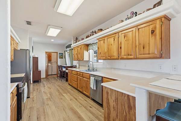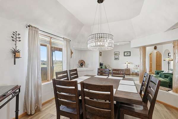 Est $2,338/moElegant Pueblo Revival style home on 3+ acres surrounded by 360 degree mountain views! This 2,122 sq ft home includes 4 bedrooms, 2 bathrooms, formal living with kiva fireplace and wood beam ceiling, formal dining and study/den. Laminate floors, high ceilings, pine pillars and lots of tasteful southwestern touches. Fenced yard, 2 car garage and separate 832 sq ft storage/shop. Sequestered master bedroom & bath w/jacuzzi tub and separate shower. Don't miss seeing this one!