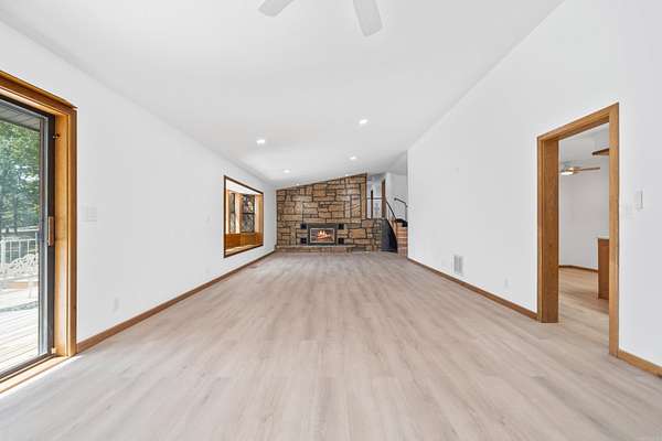 This beautifully maintained 3-bedroom, 3.5-bath, 2,926 sqft lakefront home was solidly built by a contractor for his personal residence--quality and thoughtful craftsmanship is evident throughout. Set on just under 2 wooded, peaceful acres overlooking the lake, this home offers the perfect blend of comfort, privacy, and outdoor living. Recent updates include granite countertops, refinished cabinets, updated flooring, fresh interior and exterior paint, new hardware and fixtures, and upgraded electrical and plumbing systems. Enjoy two spacious living areas (or game/movie room), a giant two-level deck for entertaining, and a freshly painted boathouse, grandfathered in, with a new boardwalk. The home and boathouse both have 50 year roofs, under 2 years old. Bonus: An additional 800 sq ft of basement space (not included in the listed square footage) provides ample room for storage, a workshop, or future expansion. You don't find land like this on the lake very often! The large level lot is perfect for privacy or has the potential for additional builds. This move-in ready home is the perfect combination of craftsmanship, modern updates, and a serene setting with beautiful lake views.