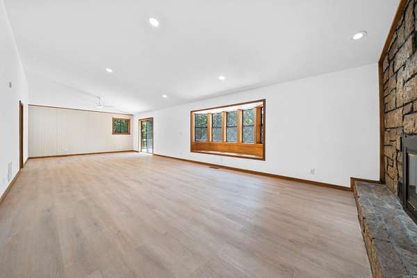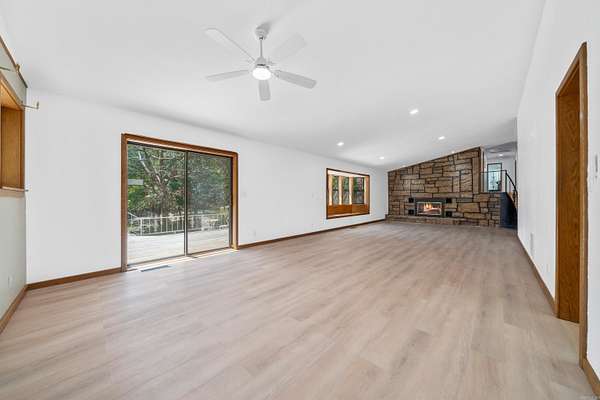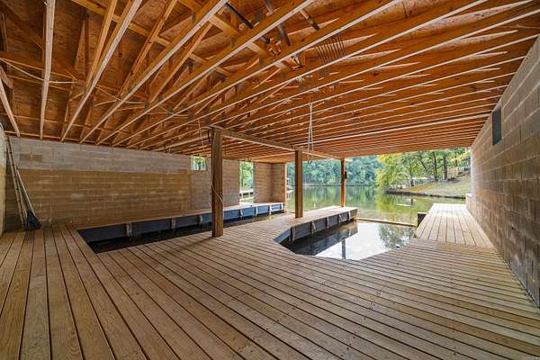 No crowded lot lines with this beautifully maintained 3-bedroom, 3.5-bath, 2,926 sqft lakefront home, custom built by a contractor for his personal residence. Quality craftsmanship is evident throughout. Situated on just under 2 peaceful, wooded acres overlooking the lake, this property offers exceptional privacy and outdoor living. Recent updates include granite countertops, refinished cabinetry, updated flooring, fresh interior and exterior paint, new hardware and fixtures, and upgraded electrical and plumbing. The home features two spacious living areas, a massive three-level deck plus a private balcony off the primary suite, and a freshly painted, grandfathered two-stall boathouse with new decking and boardwalk. Both the home and boathouse have 50-year roofs installed less than two years ago. An additional 800 sqft of basement space (not included in listed square footage) offers storage, a workshop, or future expansion. The large, level lot provides rare lakefront privacy with potential for additional builds. This move-in ready home offers quality craftsmanship and modern updates in a serene lakefront setting, with beautiful views and approximately 175' of lake frontage.