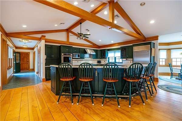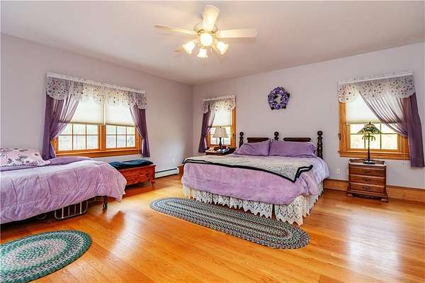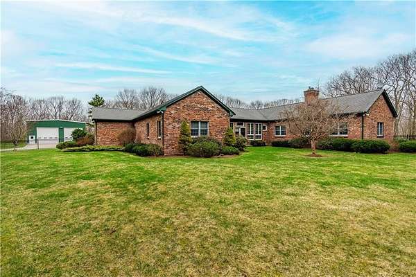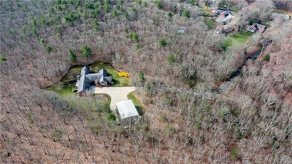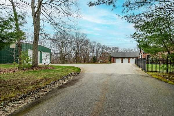 An estate like no other, offering 4,492 square feet of exceptional craftsmanship and refined living. This custom-built residence features 4 bedrooms and 4.5 baths, including three en-suite bedrooms designed for ultimate comfort and privacy. Set more than 1,000 feet from the road and gracefully positioned on over 55 acres, the property delivers unmatched seclusion and a true retreat-like setting. Every detail reflects superior quality, with only the finest materials and mechanical systems thoughtfully selected throughout. Radiant heat enhances the home's warmth and efficiency, while stunning hardwood flooring flows seamlessly across an open-concept floor plan. A grand great room anchors the home, complemented by elegant formal spaces ideal for both entertaining and everyday living. Car enthusiasts and collectors will appreciate the attached 3-car garage, along with an additional 2,400-square-foot commercial-grade garage, perfect for hobbies, storage, or business use. A rare offering with endless possibilities, this extraordinary estate blends luxury, privacy, and versatility in a truly remarkable setting.