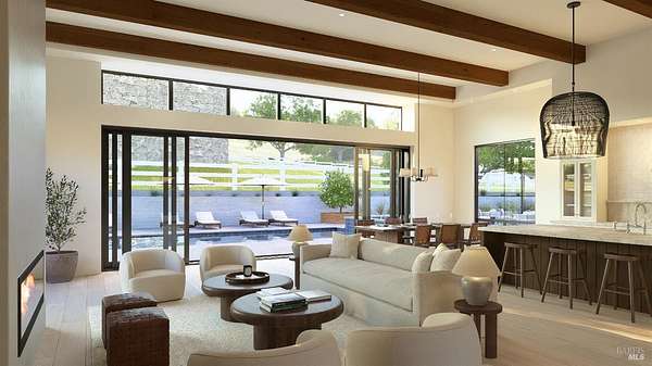 Elevated Modern Farmhouse in the Heart of Wine Country. Set against the picturesque backdrop of Wine Country, this 4-bedroom, 6-bathroom elevated modern farmhouse blends timeless design and effortless California living. Situated on 1.54 acres, the property feels both expansive and intimate - designed for entertaining, unwinding, and taking in the beauty of its historic surroundings. The sprawling home offers an open floorplan awash in natural light, top-tier kitchen appliances, custom cabinetry, and designer finishes throughout. Each of the generous bedrooms features its own thoughtfully designed en suite, offering privacy, comfort, and a touch of luxury. Outside, a resort-style pool and custom covered kitchen with dining area set the stage for year-round entertaining, all designed to celebrate effortless indoor/outdoor living. The elevated farmhouse aesthetic blends seamlessly with the transportive beauty of the surrounding historical land, creating a home that feels timeless. Every detail of this one-of-a-kind property has been carefully curated to invite you to slow down, relax, and enjoy all that wine country has to offer.