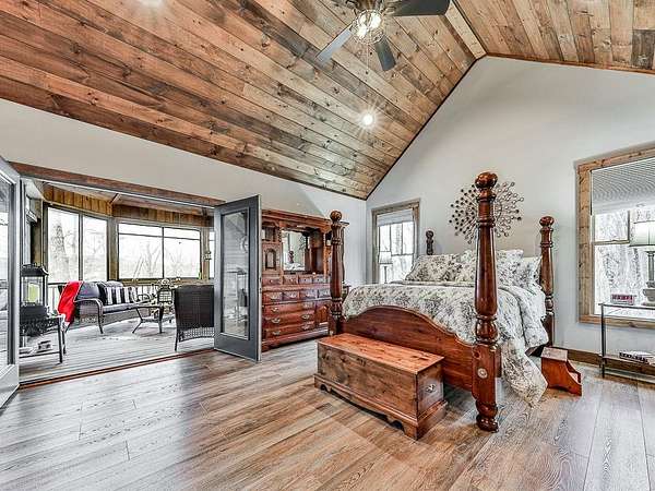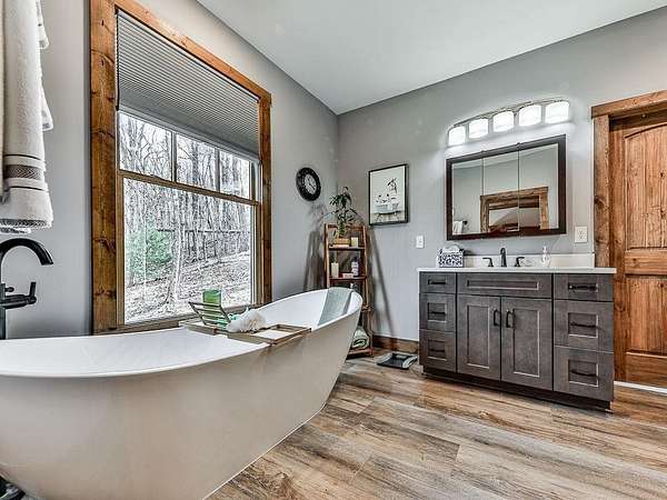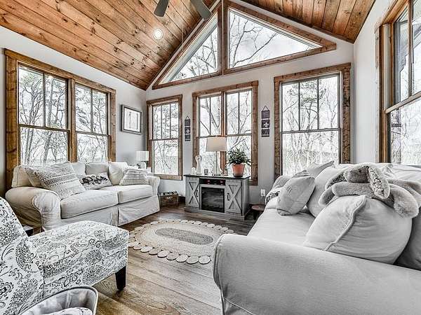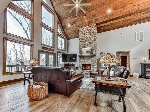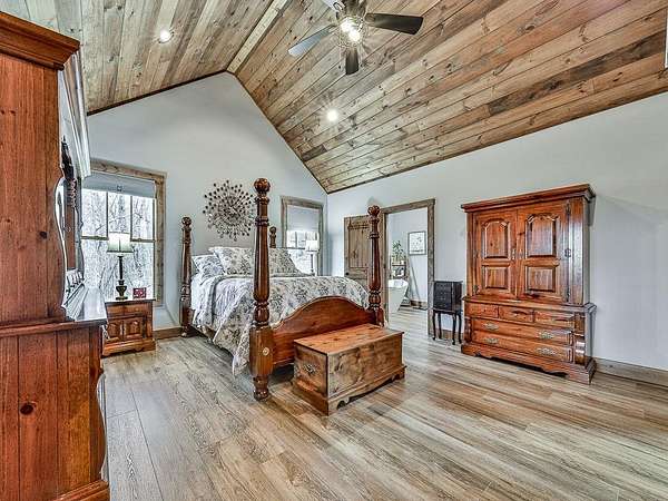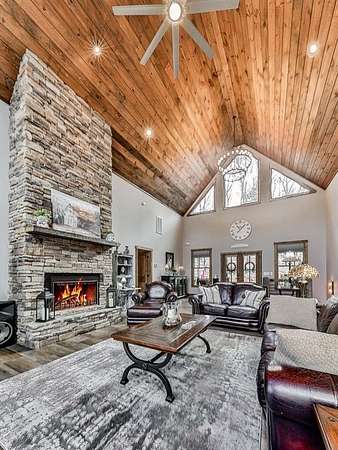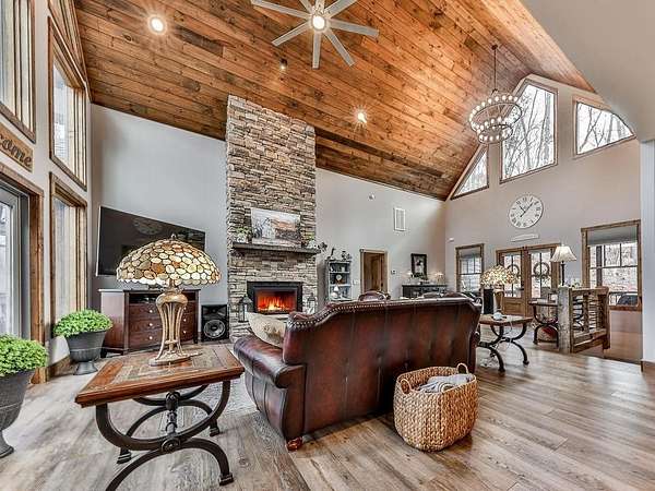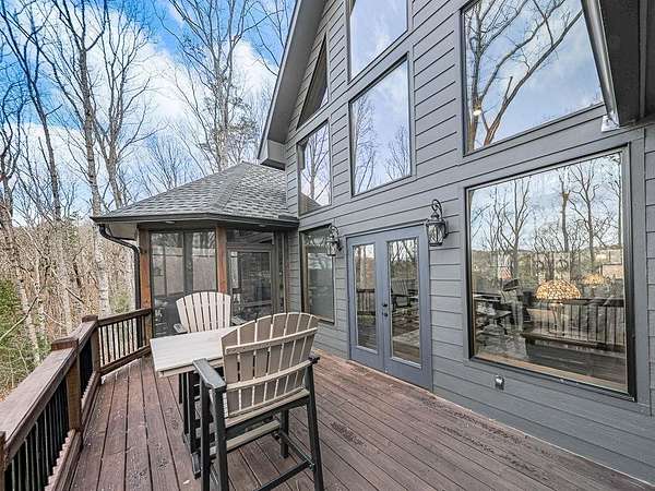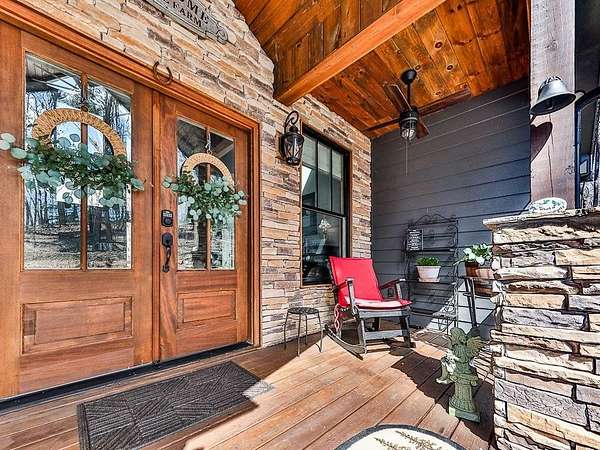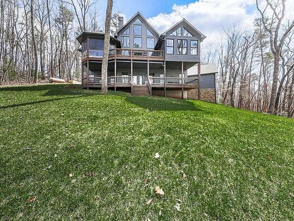 Welcome to your North Georgia mountain retreat-where thoughtful custom design, natural beauty, and modern comfort come together seamlessly. Nestled on 2.08 private acres within a gated community and just minutes from downtown Ellijay, this exceptional 3-bedroom, 3 full bath, and 1 half bath home offers the perfect balance of luxury and livability. Built in 2023, this meticulously maintained custom home showcases impeccable craftsmanship throughout-from the stunning wood interior doors and rich finishes to the expansive windows that flood the home with natural light and frame year-round views. The open-concept main level is designed for both everyday living and effortless entertaining, featuring a spacious kitchen with a large island, abundant cabinetry, and seamless flow into the living and dining areas. The inviting living room is anchored by a beautiful fireplace and enhanced by soaring ceilings and architectural detail. The primary suite on the main level offers a true retreat, complete with a spa-like bath featuring a soaking tub, oversized shower, and generous walk-in closet. Step outside to experience the best of mountain living, with a screened-in porch featuring its own fireplace, a sunroom, and two expansive rear decks-perfect for enjoying peaceful mornings, hosting gatherings, or taking in the serene surroundings. One of the standout features of this property is the usable outdoor space-offering a rare combination of level and gently sloping yard, ideal for recreation, relaxation, or future enhancements. The finished terrace level provides incredible flexibility and can easily function as an in-law suite or private guest quarters. Additionally, the detached garage is connected by a covered walkway and includes a large bonus room above, ideal for a home office, studio, or additional living space. A matching storage shed adds both convenience and charm. Every detail of this home has been thoughtfully designed and beautifully maintained, creating a truly turnkey opportunity in one of Ellijay's most desirable settings. This is more than a home-it's a lifestyle.