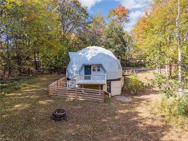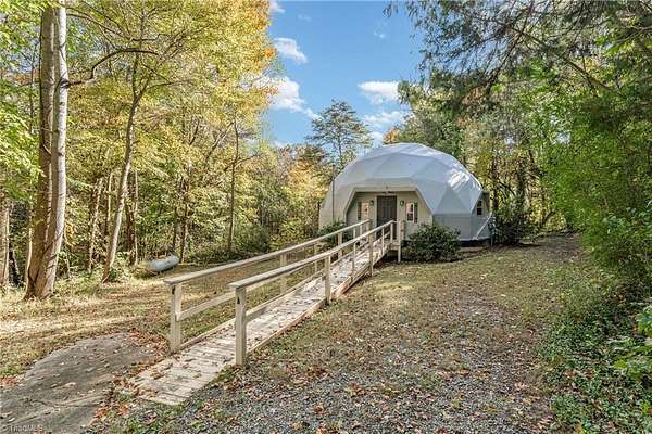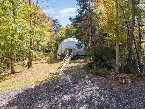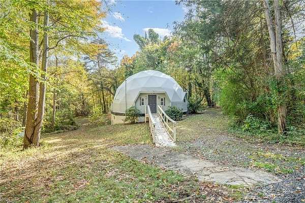 BACK ON THE MARKET at no fault of the seller! Think outside the box--or better yet, live outside it! This geodesic dome in Reidsville, NC is round and ready for its next owner. With ample space on 4.46 wooded acres, it proves corners are overrated. Step inside "Dome Sweet Dome," where architecture meets adventure: open-concept living under soaring ceilings, a sleek updated kitchen with granite, and a cozy loft suite with a spa-style bath. Built with steel, polystyrene, and fiber-reinforced concrete (even the basement ceiling is 6" concrete), it's as efficient and solid as it is unique. Sip coffee on the back deck, unwind in the freestanding tub, or launch the Airbnb everyone will book just to say they "slept in a dome." Perfect for an eco-retreat, artist's getaway, or short-term rental. At $235,000, this conversation starter might be the most fun you'll ever have with real estate. Corners are out. Curves are in.