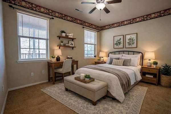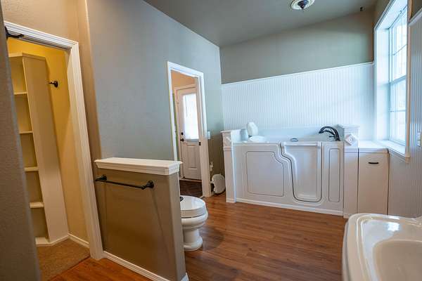 - Ceiling Fan(s), Fiberglass Stall Shower, Granite Counters, Open Floorplan, Shower/Tub Combo, Soaking Tub, Walk-In Closet(s)