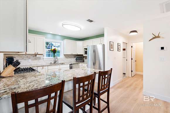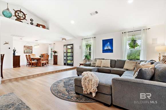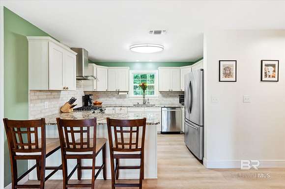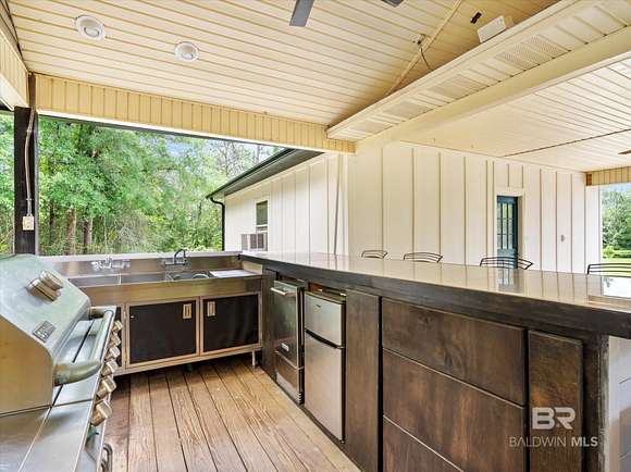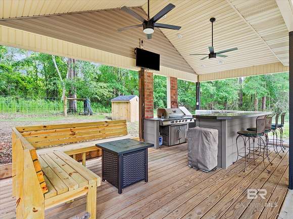 Looking for privacy, space, and a move-in ready home with room to breathe? This fully renovated 3-bed, 2-bath sits on 32 acres in Robertsdale and offers the best of both worlds--modern upgrades and peaceful, country living.Step inside to soaring ceilings, luxury vinyl plank flooring throughout, and two fireplaces that add charm and comfort. The layout is open and inviting, and while the kitchen may be compact, it's been smartly updated with granite countertops, stainless appliances, and custom cabinetry that makes the most of the space.The primary suite is a peaceful escape with a walk-in closet, dual vanities, a jetted tub, custom tile shower, and a private screened-in porch to enjoy quiet mornings or relaxing evenings. Both bathrooms were fully renovated in 2023.Big-ticket updates include: a FORTIFIED roof (2021), new HVAC systems, Hardie board siding, energy-efficient windows, 120' well + pump, and a tankless water heater (2023)--plus a whole-home generator for backup peace of mind. Every major system has been thoughtfully handled so you can settle in with confidence. Outside, you'll find a 12' stocked pond, fenced acre for pets, and a covered RV pad with full hookups. The outdoor kitchen is made for entertaining--grill, sink, mini fridge, TV + sound system. A converted two-car garage serves as a workshop, and there's also a two-car carport, powered shed, boat storage, and raised garden beds ready for your farm-to-table lifestyle. City + well water. No current STR restrictions in Robertsdale (buyer to verify).Come experience what 32 acres of peace, privacy, and possibility really feels like. Let's walk it. Buyer to verify all information during due diligence.