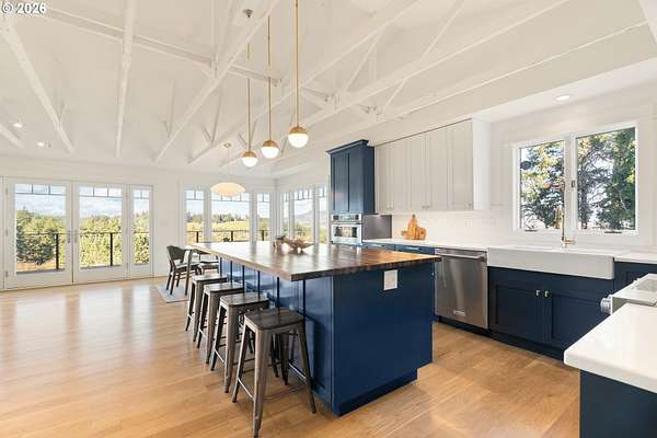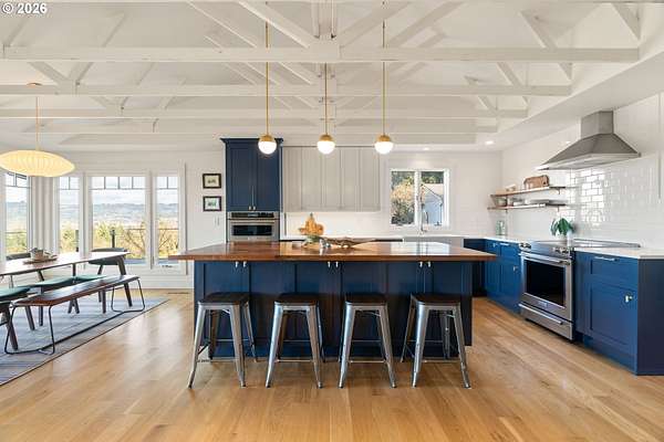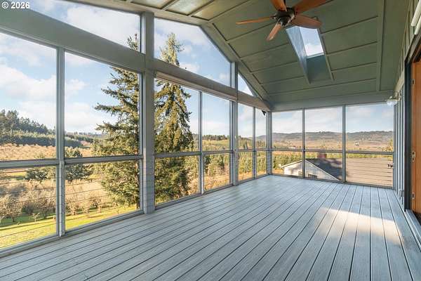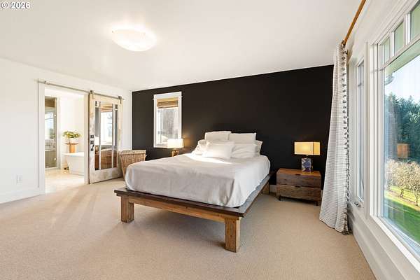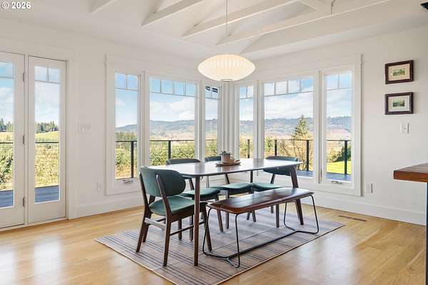 Private 10-acre Dundee Hills AVA property with panoramic vineyard and mountain views, offering peaceful country living just 5 minutes from town. Set on a quiet dead-end road with a private setting and sunset views. Fully renovated 4-bedroom, 3-bath home featuring an open-concept layout, expansive windows, chef's kitchen, updated baths, and a spacious primary suite. Large outdoor deck ideal for entertaining.Approximately 8 acres of producing hazelnuts in desirable Jory soil, ideal for vineyard, hobby farm, or agricultural use. Includes a 1,400 sq ft barn currently approved as a Yamhill County permitted hardship ADU (permit required for future use) with potential for multi-generational living, office, shop, or winery facility. Additional features include a separate garage, fenced dog yard, and seasonal creek.A rare opportunity to own Oregon wine country real estate with privacy, views, and versatility.