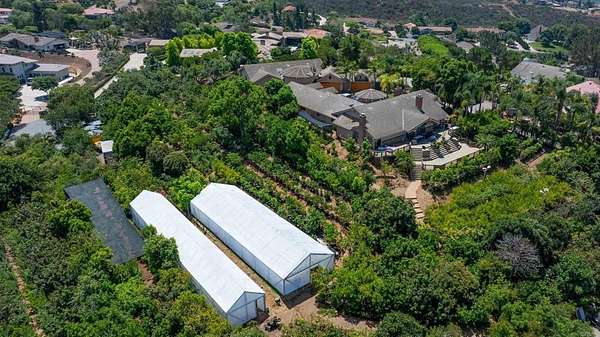 This exclusive, serene self-sustaining tropical paradise awaits you! Perfect for a secluded family compound/retreat and those who appreciate the beauty and value of this rare find. Welcome to this spectacular 7,783sf single level estate plus 1,945sf 5BR/3.5BA guest house high in the hills of Vista on 3.88 private acres w/panoramic ocean and mountain views! Mature palm trees line the 400ft long driveway leading to the lush tropical setting of pure oasis. The resort-style indoor salt-water pool is housed in a 2,300sf building w/soaring ceilings, skylights and large windows w/sweeping views! The pool house has a dual heat and air system, air changes every 7 minutes, a dressing room, full bath and is climate controlled via solar panels. A dramatic rotunda connects the pool house to the main home. The flow of the home is ideal for large gatherings and entertaining. Features include beautiful wood inlaid floors, open beamed ceilings, a large chef's kitchen w/granite, maple counters, Travertine floors and a 1,000sf play room or convert to another master suite or guest quarters. Large multi-level 6,000+sf decks overlook the lighted sand volleyball court. The true beauty of this property is the amazing grounds like no other boasting more than 600 mature subtropical fruit trees from around the world. Also included is your own 1,500ft well and 60 panel electric solar system. The property has an extensive water irrigation system including three 5,000 gal reserve water tanks with full delivery system. Separate meters for the house, guest house and well. Currently an exotic fruit nursery, the 10,000+ potted fruit trees are available for purchase if desired. The year round warm and temperate Vista climate compliments this fantastic estate! The Cristine Clark & Jamie Gilman Team, 760-500-5189.
