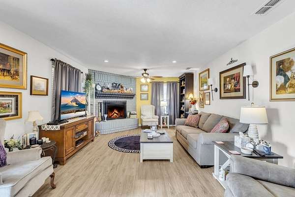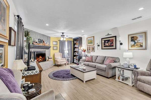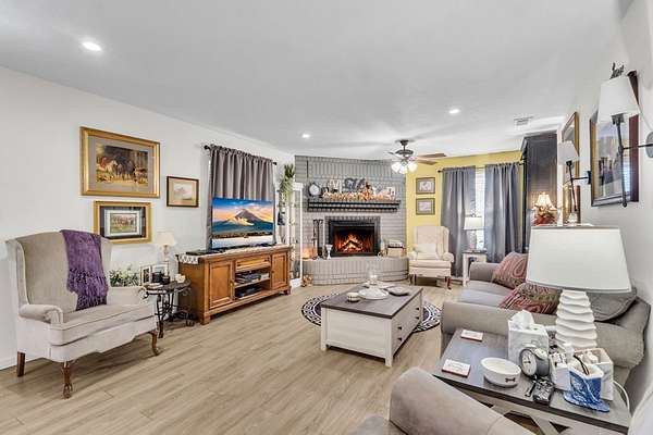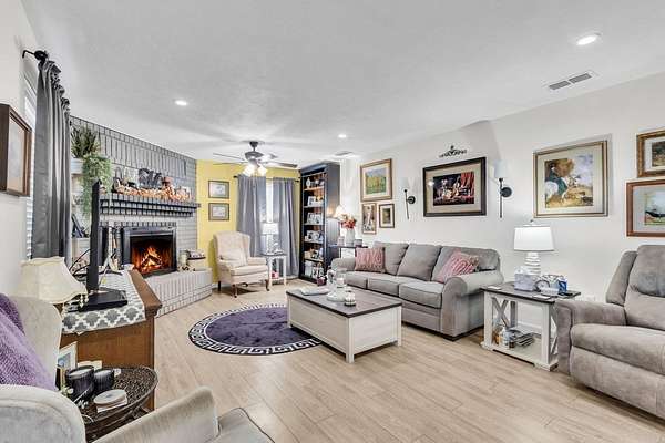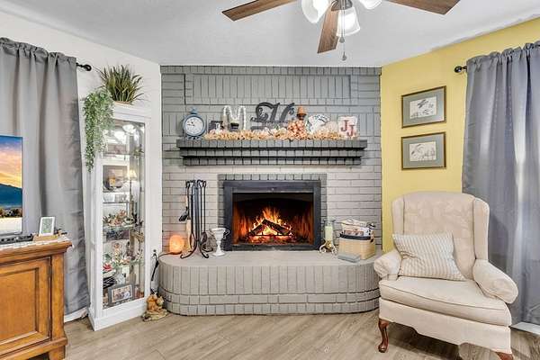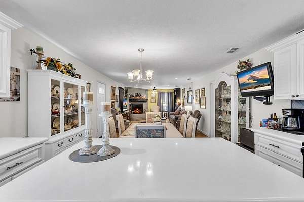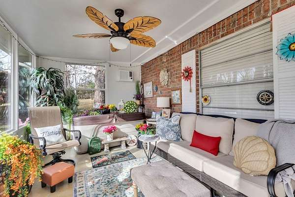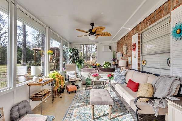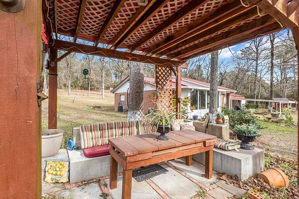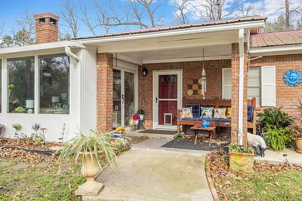 Welcome to this beautifully maintained 3.33+/- acre unrestricted property, offering the perfect balance of comfort, function, and outdoor living. The main home features 2 bedrooms and 1.5 baths with an inviting open-concept layout where the living room flows seamlessly into the island-style kitchen and dining area, anchored by a stunning corner wood-burning fireplace. Enjoy peaceful mornings in the glassed-in sunroom, ideal for relaxing and watching local wildlife. The home includes a garage, carport, circle drive, and a versatile extra room off the garage with central heat and air--perfect for a third bedroom, game room, or home office. A charming breezeway leads you to the covered back porch, ideal for entertaining. The entire property is fully fenced and features an RV shed, metal shop, and chicken coop, offering endless possibilities for hobbies, or storage. This well-manicured property is a rare opportunity for those seeking space, privacy, and freedom with no restrictions.