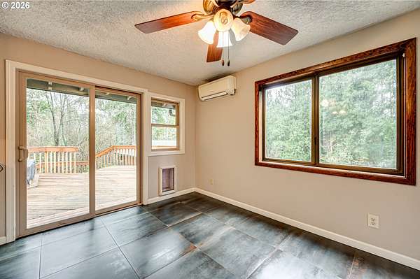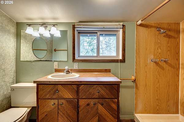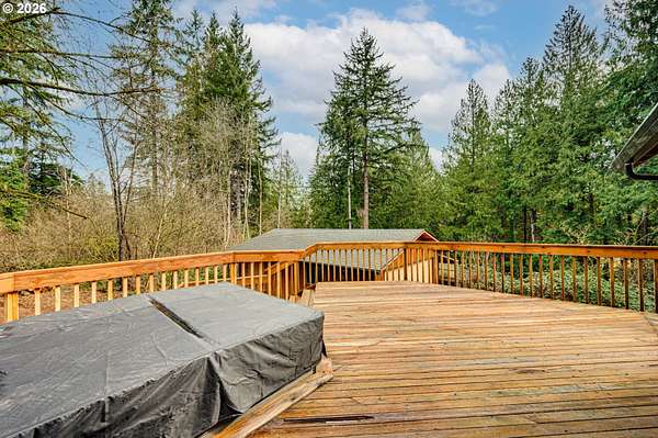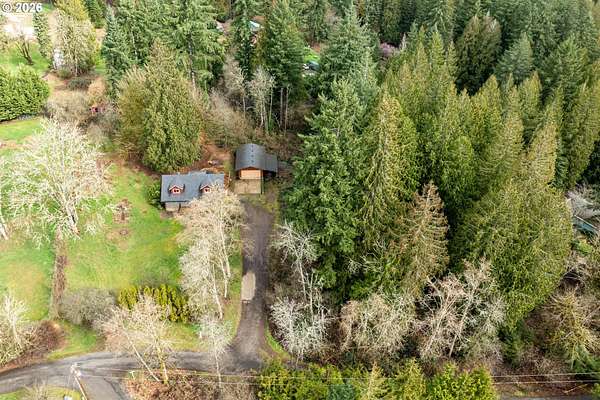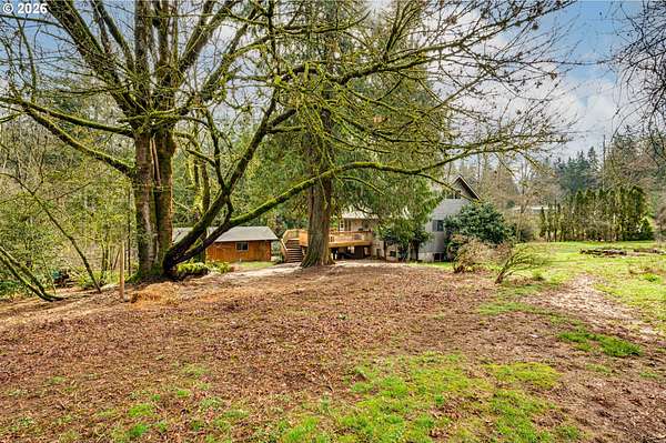 Enjoy the serenity of wooded surroundings in this custom-built home featuring four spacious bedrooms, two and half baths on 2+ acres. Thoughtfully designed layout with kitchen offering an abundance of cabinetry and counterspace, perfect for everyday living and entertainment. Large picture windows fill the home with natural light while showcasing peaceful views of the surrounding forest landscape. Lower living space includes convenient private outside access complete with built-in kitchen cabinets making it ideal for separate living quarters. Step outdoors and experience everything this property has to offer; variety of mature fruit trees, blueberries, raspberries, natural creek, welcoming front porch overlooking the expansive front yard, and a spacious deck with a hot tub, the perfect place to relax and unwind while enjoying the tranquil setting and wildlife. This property explodes with color in the Spring and offers garden boxes for a bounty of home grown vegetables. 1 car garage plus storage attached, 2 car garage detached with workshop. Generous storage throughout the home. Minutes to Battle Ground amenities. Don't miss out on this amazing home and property!