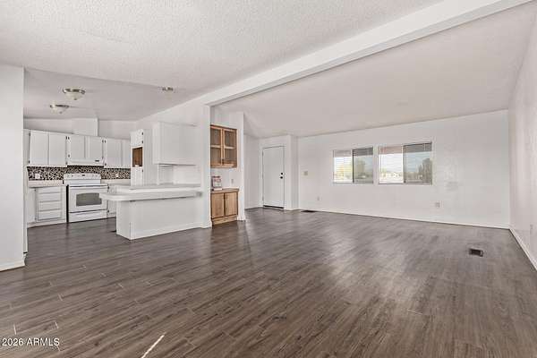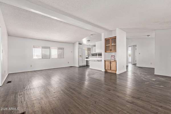 Experience refined ranch living on over 3.5 acres of premium horse property beneath endless open skies and sweeping mountain views. This newly renovated, elegant single-story residence welcomes you with a charming front patio and beautifully refreshed interior. Soaring vaulted ceilings, rich wood-look flooring, and abundant natural light create a bright, sophisticated ambiance. The open-concept design flows seamlessly into a well-appointed kitchen with crisp white cabinetry, tile backsplash, matching appliances, and a breakfast bar-perfect for family gatherings. The serene primary suite offers a walk-in closet and private bath. Unwind on the covered patio and savor breathtaking sunsets, privacy, and room to roam in true Arizona luxury.