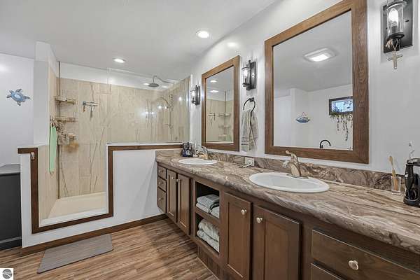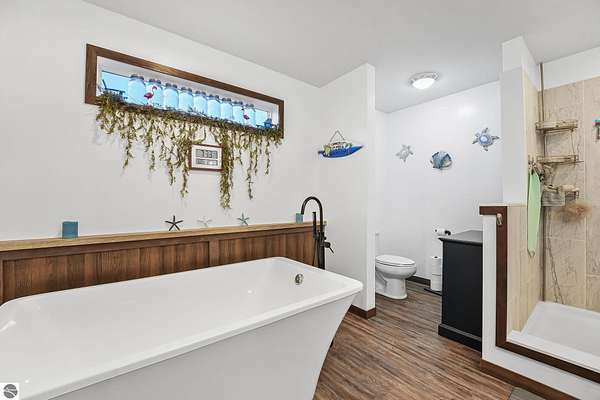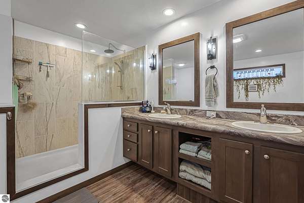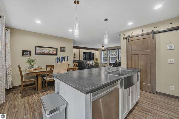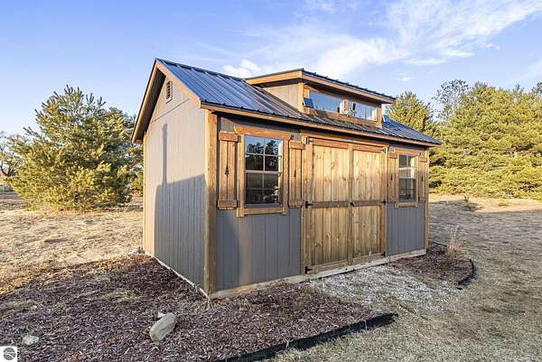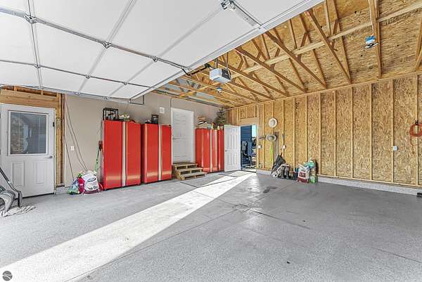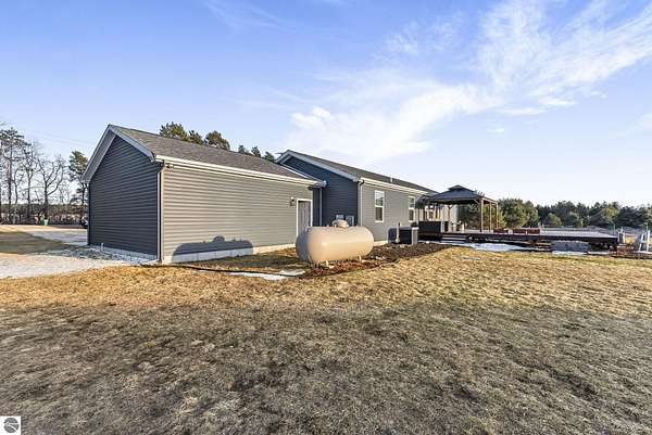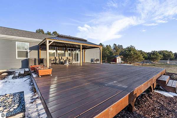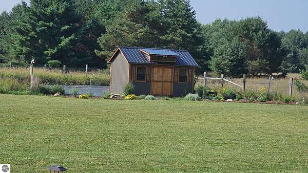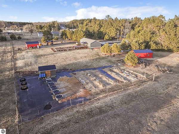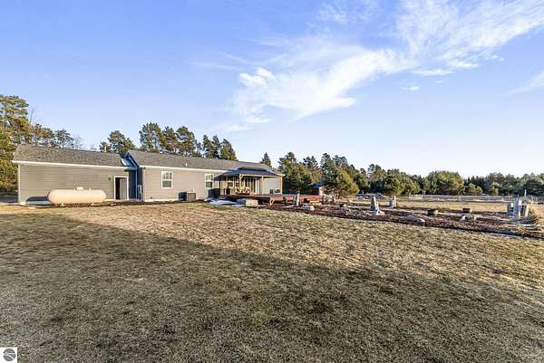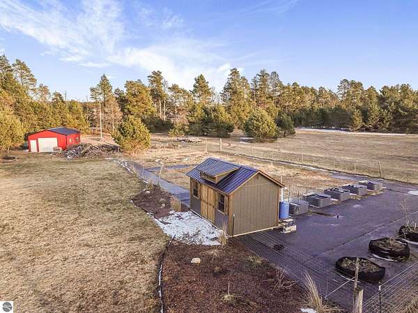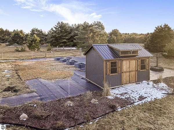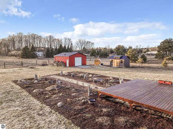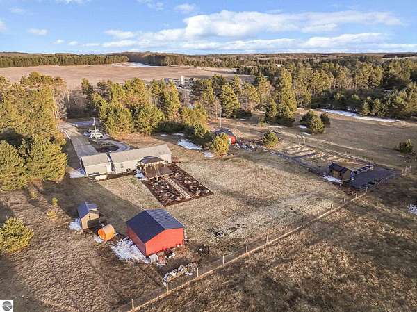 Modern country living on 6.75 acres with multiple outbuildings and outdoor entertaining areas. Built in 2021, this well maintained 3 bedroom, 2 bath home with 2-car attached garage offers the space, privacy, and functionality buyers searching for acreage will appreciate. Inside, the open-concept floor plan connects the kitchen, dining, and living areas, creating a comfortable space for everyday living and entertaining. The split-bedroom layout places two bedrooms on the opposite side of the home from the spacious primary suite, providing privacy for family or guests. The primary bath features a soaking tub and walk-in shower, creating a relaxing retreat. The kitchen boasts a large pantry, newer appliances and an island. Additional features include a laundry/mud room, LED ceiling fans, faux wood blinds throughout, and outside camera security system. Outdoor living is a highlight of this property. A 24x30 deck built in 2024 sits just off the kitchen and includes a 12x20 gazebo with a metal roof, ideal for gatherings, or relaxing evenings. The yard features water-wise landscaping, flower beds that host a variety of birds and wild-life, and a fenced garden area with a 10x16 shed, dual access gates & invisible dog fence. This property offers excellent storage, hobby farm potential, and workshop space with multiple outbuildings including a 24x25 metal barn with cement floor, electricity, wood stove, and remote door opener, a 20x30 metal barn, and two 10x16 Amish-built sheds. Recent upgrades include central air (2024), epoxy garage floor with lifetime warranty (2024), seamless gutters (2022), invisible pet fence, and a Reolink 360 degree smart security system. Located 3 minutes north of everything the North end of Cadillac has to offer, shops, restaurants, grocery stores etc. and 9 minutes to downtown Manton. This home provides ease of living in the country while still being close to everything you could possibly need. Don't delay!