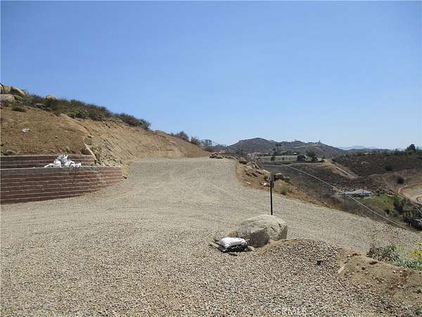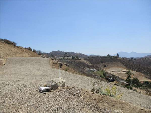 Est $4,443/moBreathtaking view building lot. Panoramic view of Lake Mathews, mountains and valleys. You can see for miles. The view is approximately 300 degrees of unobstructed view. The lot grading plan and house pad have finalized approval by Riverside County. Water is connected with water meter. Electricity is ready to pull, next to property. The retaining wall is permitted. There is fire truck knockout. At the top of the lot is a metal carport. The lot is completely fenced with wire fencing and white vinyl fencing at front gate entrance.