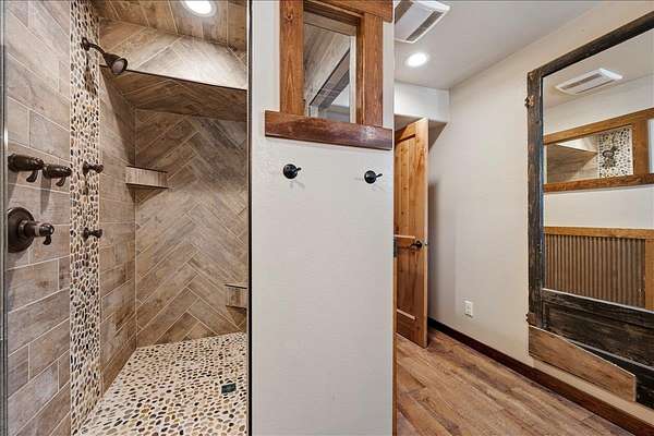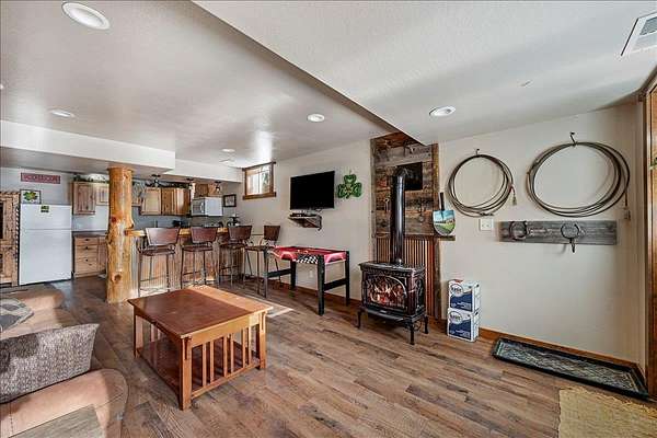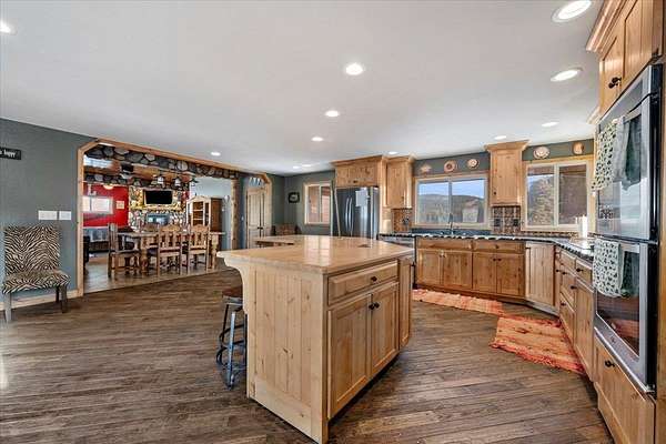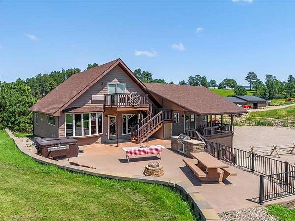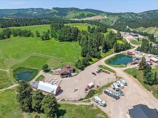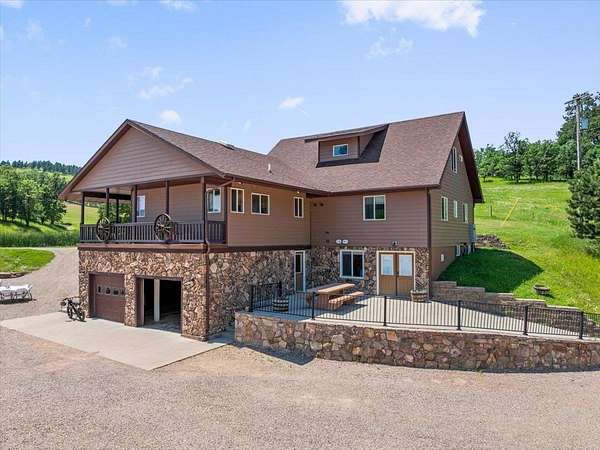 For more information please contact listing agent Heath Gran 605-209-2052 or Scot Munro 605-641-6482 with Great Peaks Realty Munro & Gran. This is truly an exquisite 4 bedroom 3 bath retreat nestled on 13.07+/- acres in Boulder Canyon. The property includes a beautifully transformed barn currently utilized as an event venue, this could be used a variety of ways or continue the thriving Muley Hill Lodge business - fully equipped to host weddings, family reunions and large gatherings of any sort! This tastefully designed country home will welcome you with an open concept living aglow by a gas fireplace, stunning views, dining and expansive kitchen with natural wood cabinetry, granite countertops, large center island, stainless steel appliances and built-in double oven. Laundry conveniently located on both the main and basement. Each level of this home offers custom walk-in showers, full kitchen, cozy living room and stunning outdoor spaces. Venue barn includes a functional bar, wide open indoor event space on the main level plus 28x63 vaulted loft that steps out onto a large deck overlooking the breathtaking views of the natural pond and vast landscape - ideal for photos that will last a lifetime! Plus wheelchair ramp for ease and bathroom facilities. Come call Muley Hill Lodge your next dream home or business - Enjoy, relax and gather either as a functional vacation event spot or dream country home on acreage, bring your horses!