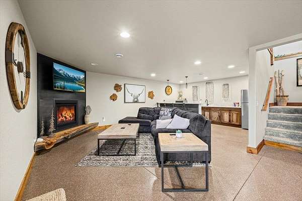 For more information, please contact listing agents Heath Gran 605-209-2052 or Scot Munro 605-641-6482 with Great Peaks Realty. This custom-built rustic retreat is tucked away on 7.66 acres just off of Maitland Road in Paradise Acres III, with close proximity to the surrounding recreation throughout the Northern Black Hills, right outside your door! The 3200+ sq ft home will come fully furnished, move-in ready or ready for you to operate as an established vacation rental! This property is built to showcase the expansive views of the Black Hills to be enjoyed from every space of this home or the large back deck. The main level offers vaulted, rustic tongue and groove ceiling and gas fireplace in the living area, open concept to a spacious kitchen featuring a center island, granite countertops and pantry offering additional storage. Main floor also includes a 2nd bedroom and bathroom in addition to the primary suite with double sink vanity, tiled shower, access to the deck and barn-door accent, plus full laundry hookups in the walk-in closet. Appreciate a heated 2-car garage completely finished with epoxy floors. The large basement is a great space for entertaining with a wet bar, gas fireplace, walkout to the outdoor private patio to enjoy the hot tub, plus two additional bedrooms and full bathroom. The listing includes the neighboring 5+ acre lot for room to expand this mountain oasis to complete your forever dream home!