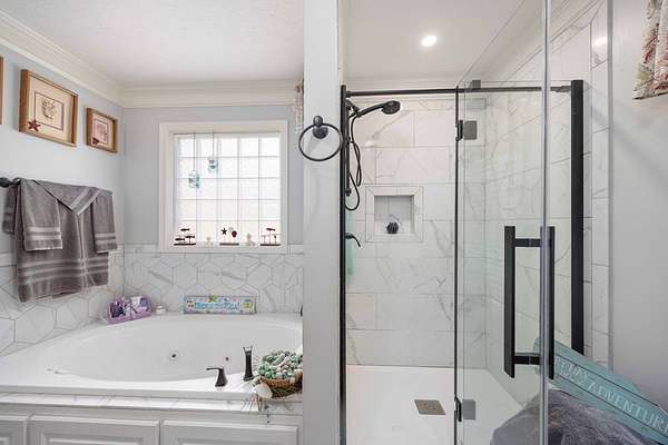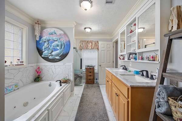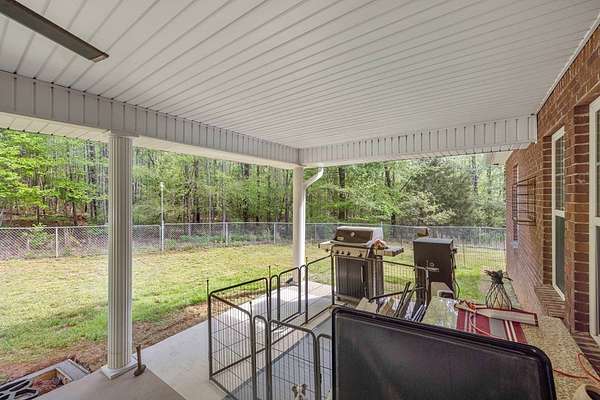 Tranquil property in NE Harris County--brick ranch home with four bedrooms, two full bathrooms and one half bath. Entry foyer leads to formal dining room and great room with fireplace. Kitchen with solid surface countertops, tiled backsplash and stainless appliances. Master suite with recently updated bathroom. Separate jetted tub and beautiful walk-in glass shower, and double vanities. Split bedroom floorplan gives owners privacy from family or guests. Recently updated hall bath with tiled shower. Covered patio overlooks the wooded property. Small fenced area for pets. This property has the ultimate detached garage that is 30' x 50', wired, insulated, roll up door and a car lift that can be purchased separately. Plenty of room for lawn equipment, tools, vehicles and more. Additional fenced area for camper storage. Beautiful view of the rolling hills below Pine Mountain. Owner has replaced the roof, HVAC, updated all of the bathrooms, added the shop, paved the driveway and so many more upgrades. Don't miss this one!