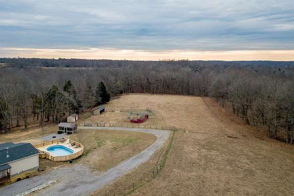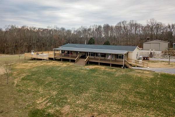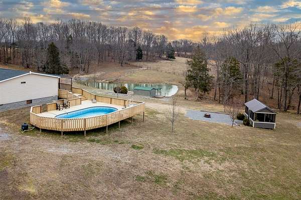 A rare opportunity to own a truly special hobby farm offering privacy, beauty, and versatility across 44.4 breathtaking acres. This stunning property features rolling terrain, complete seclusion, and a peaceful setting that feels a world away--yet still practical for full-time living. The land is thoughtfully improved with two stocked ponds, a fishing house, a private gun range, and four outbuildings, including one with finished farmhand living quarters--ideal for guests or on-site help. Built in 2017, the 2,280 sq ft home offers a comfortable and modern layout with 4 bedrooms and 2 full baths, new carpet and fresh paint throughout, and a wood-burning fireplace that anchors the living space. Enjoy morning coffee or evening sunsets from two covered porches, knowing you're protected year-round with a Generac backup generator and a roof just 3 years old. Outdoor living truly shines here with a pool featuring new decking, a firepit, and a screened-in entertainment building--perfect for hosting, relaxing, or simply soaking in the quiet surroundings. Whether you're seeking a private retreat, a working hobby farm, or a legacy property to enjoy for years to come, this one checks every box. Peace, privacy, and absolutely stunning land--this is country living at its finest. *One or more photo(s) were virtually staged and/or digitally enhanced*