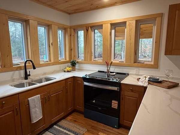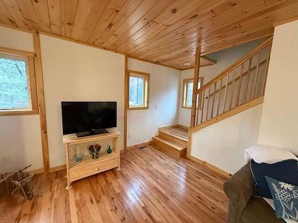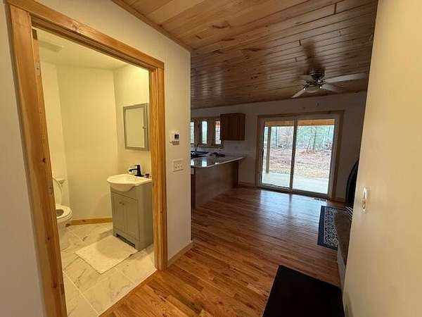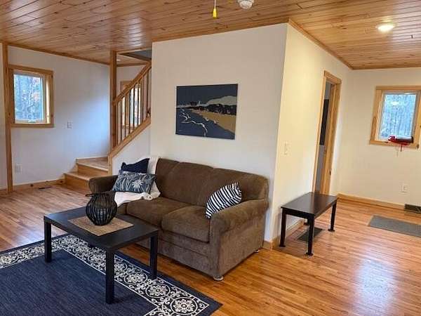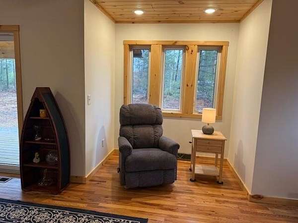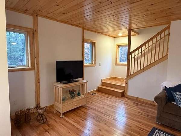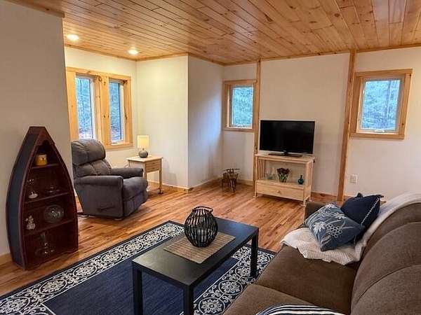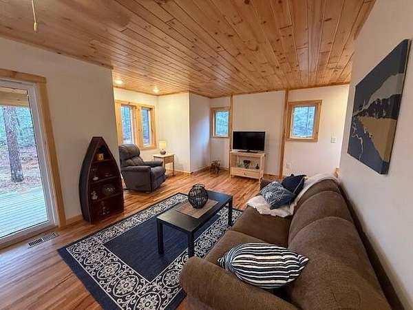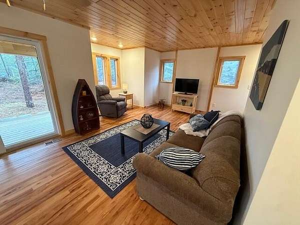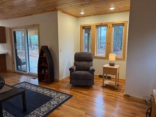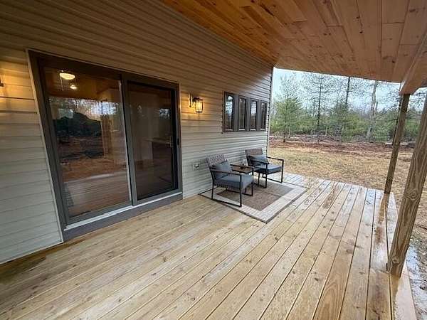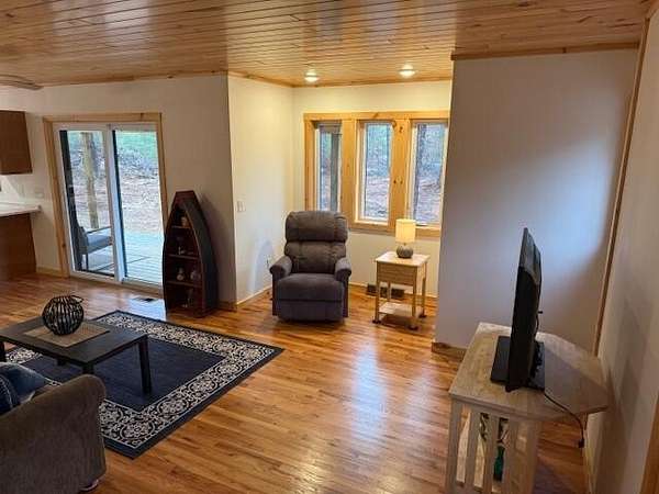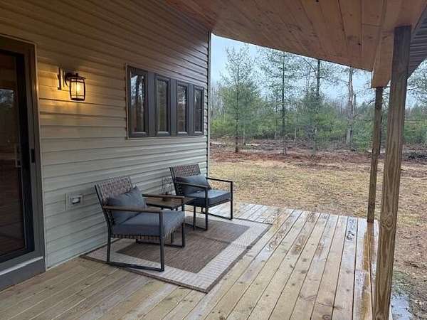 Land Contract Terms Are Available! New Construction Alert! This beautifully crafted home is completely finished, ready to move in, and no expense has been spared! This 2 BR/1.5 BA home/cabin offers Tongue and Groove ceilings in the kitchen, living room AND deck area giving it a rustic feel, paired with being tucked back in the woods and across the road from state land, this property truly is a secluded gem! Sit inside and view the wildlife from the large sliding glass door or outside on the beautifully finished deck. Many unique features were put into this home including hand-cut trim, hand-finished red oak hardwood flooring, and upgraded windows and cabinets. Contact listing agent for more information. *Home is staged. Furniture not included in the sale.*